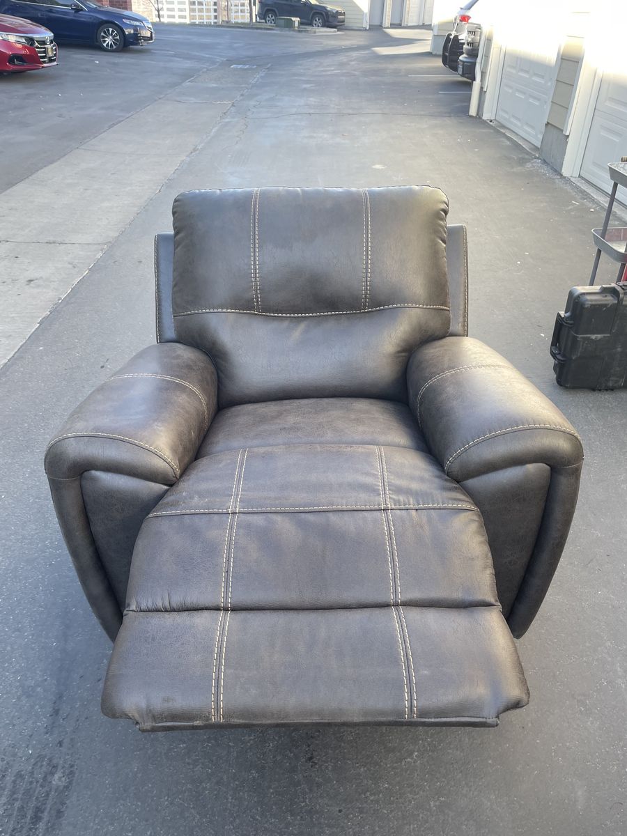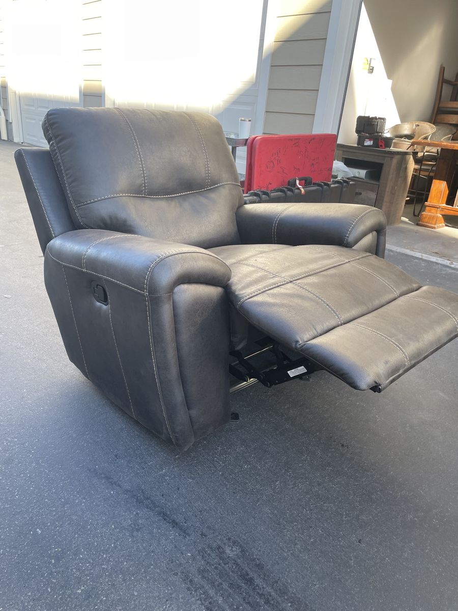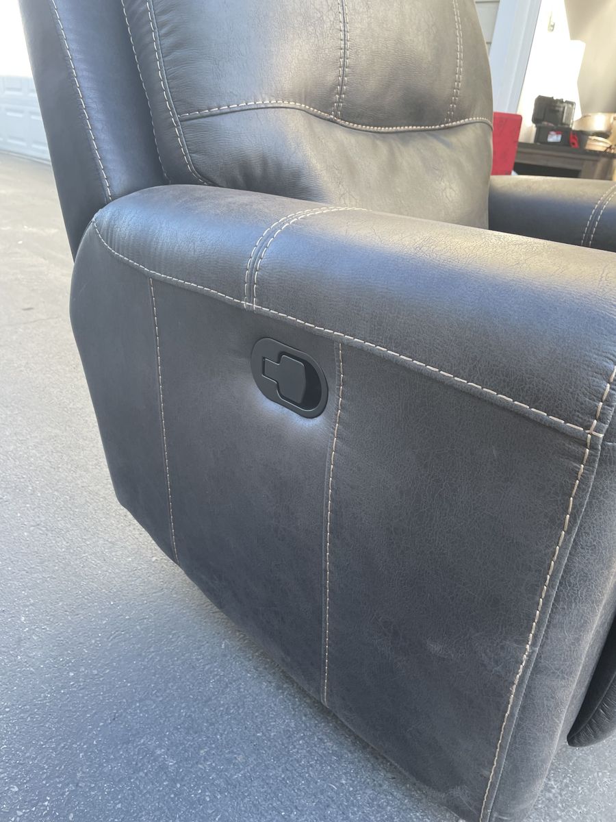 VenmoDescription: I am selling a grey rocker recliner that is incredibly comfortable and in [insert condition, e.g., great] condition. It is the grey version of the popular "Canyon" model sold at RC Willey. This chair is perfect for a nursery, living room, or man cave.