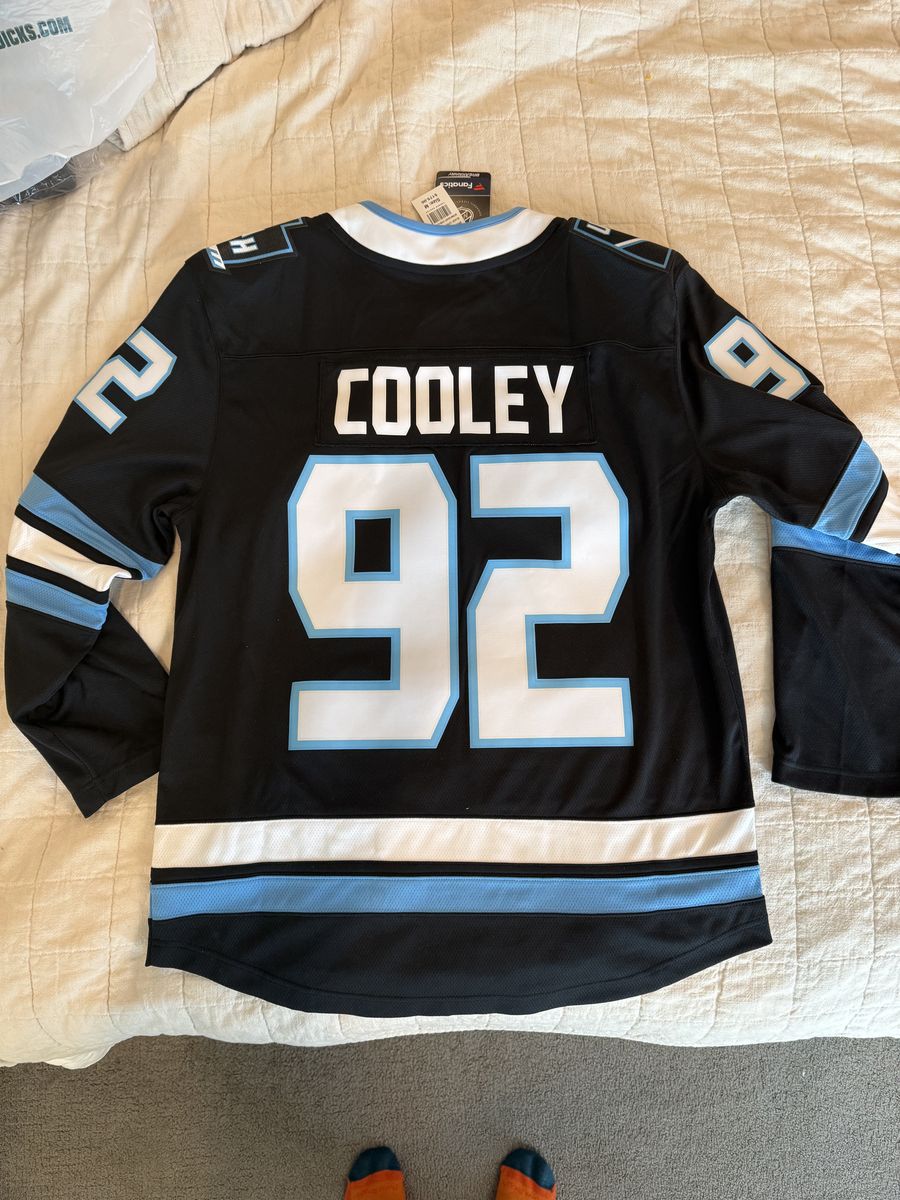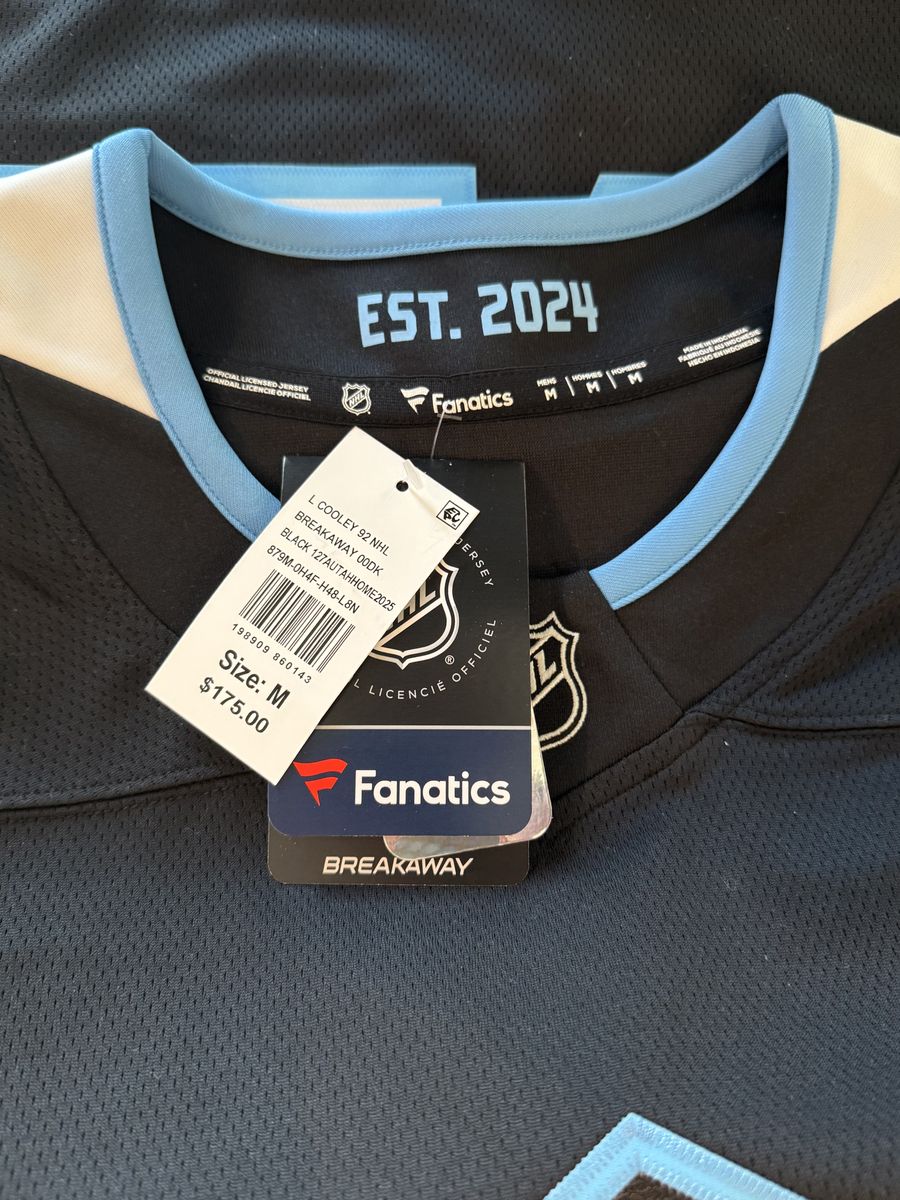 VenmoFanatic Utah Mammoth Breakaway Jersey #92 Logan Cooley. Adult size MED. The Breakaway Jersey is all stitched, but has a more casualwear comfy fit. I’m 6 ft 215 lbs dad bod and it fits comfy over a t shirt. I ended up sizing up but forgot to return this Med within Dicks Sports return policy window. :( I originally bought it in Nov.
