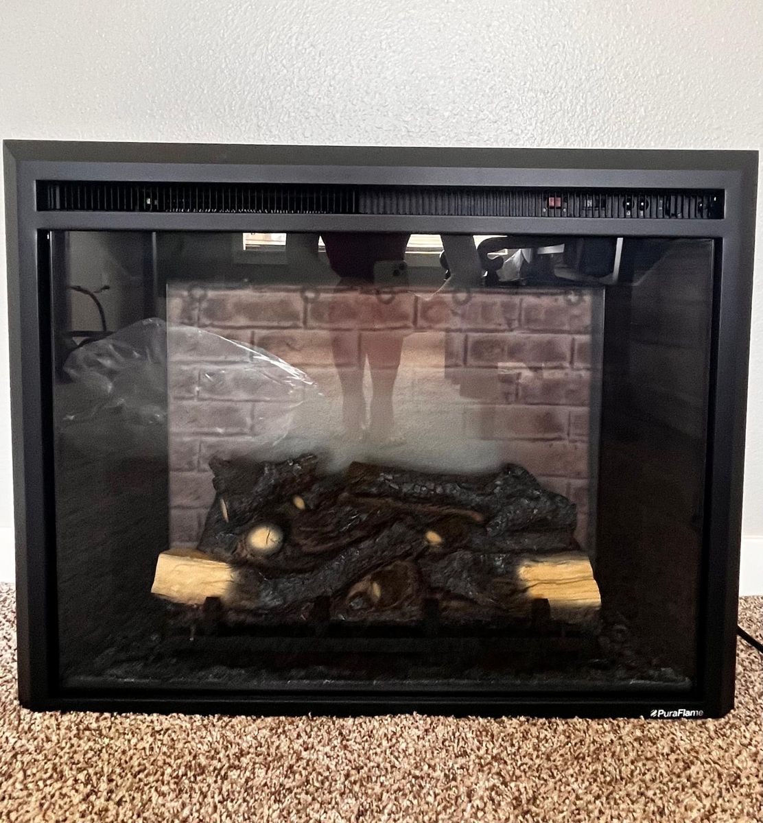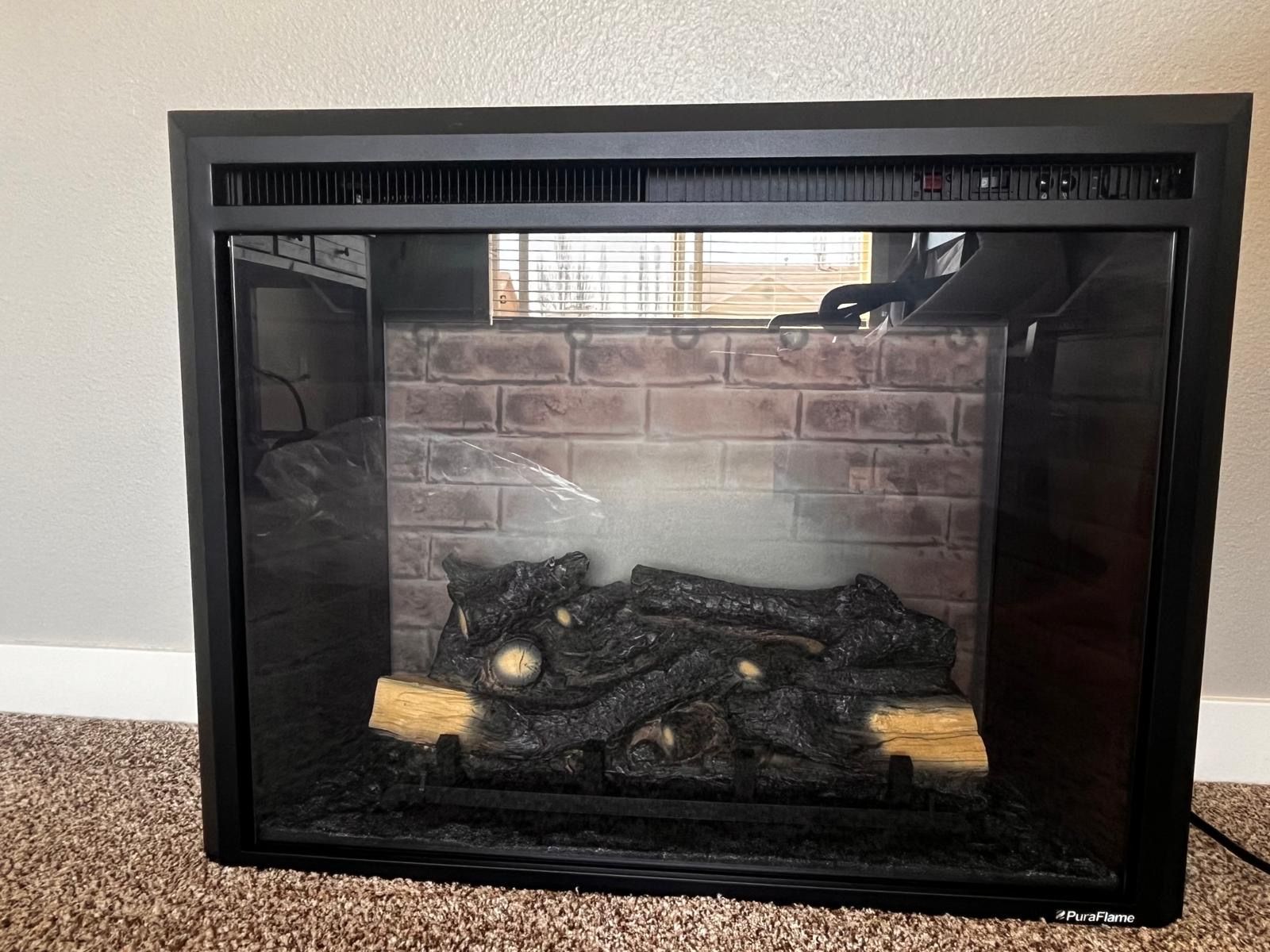 VenmoModern and stylish electric fireplace insert in very good condition. Features realistic flame effect with decorative logs, creating a cozy and warm atmosphere without the need for a real fire.