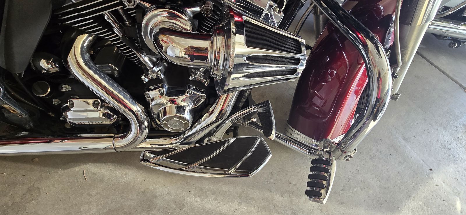 Arlen Ness Super sucker air cleaner. Kuryakyn phantom floor boards and shifter. 16" Paul Yaffe bars CFR slip ons Exhaust Rear shocks are progressive 944 ultra low touring, adjustable. Scorpion clutch 103 with a 6 speed transmission Comes with a quick release razor tour pack and 2 up seat.