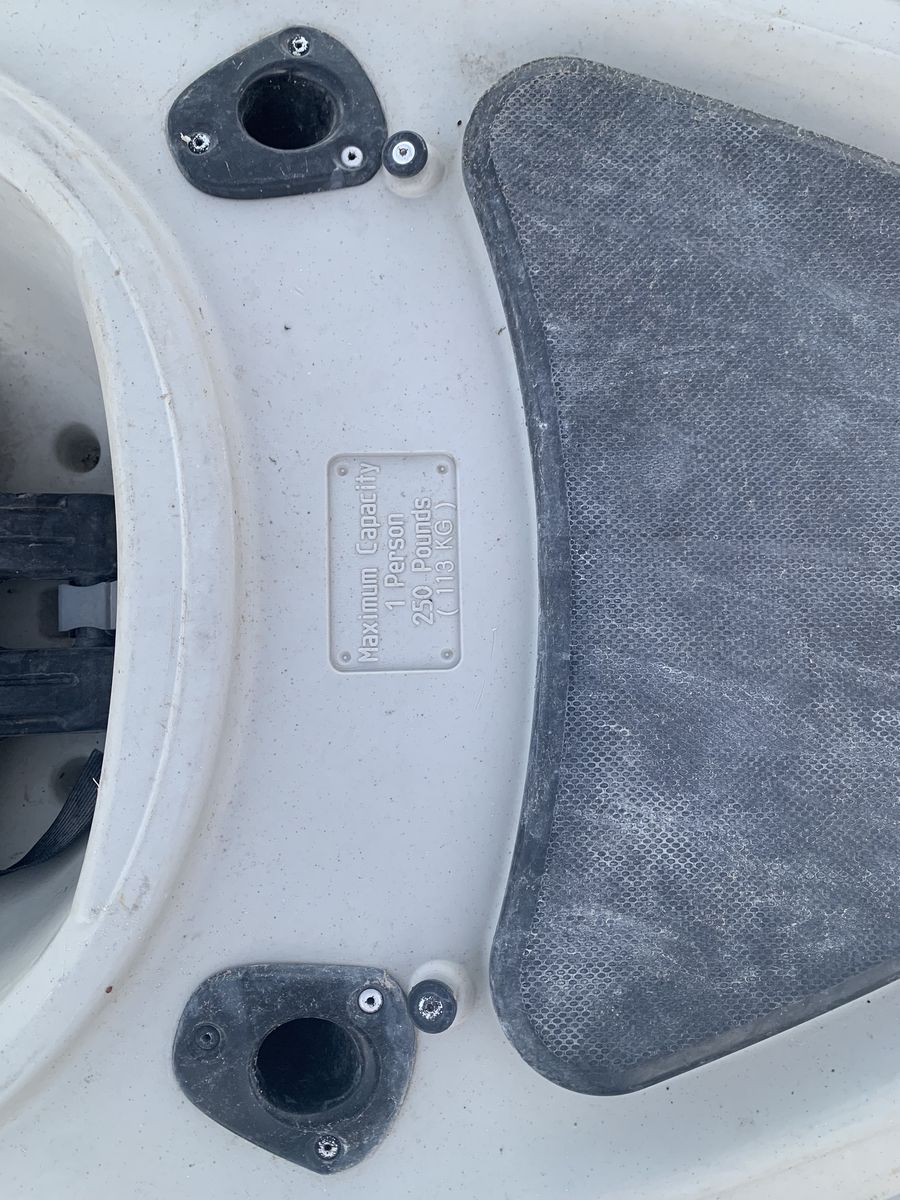 Foot rests inside the kayak, small storage compartmen, back rest. One person 250 pound max capacity.