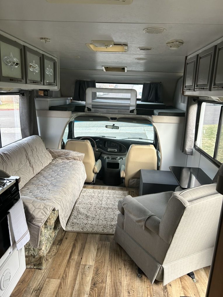 29 ft powered by Ford 7.3 V8 power stroke turbo diesel on a E-450 Chassis. 45,268 original miles fully self contained, new inside paint , front windshield, cabinet hardware, one piece vinyl flooring, new toilet, bed mattress. Lots of storage asking $29,000.00