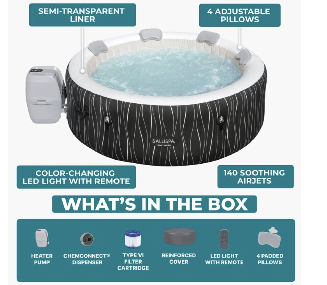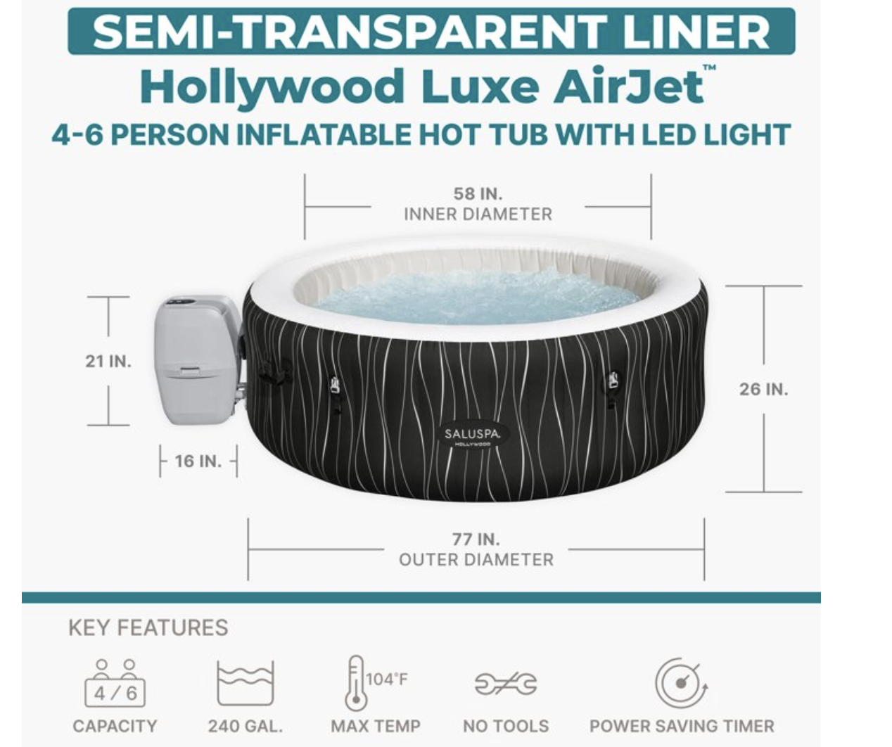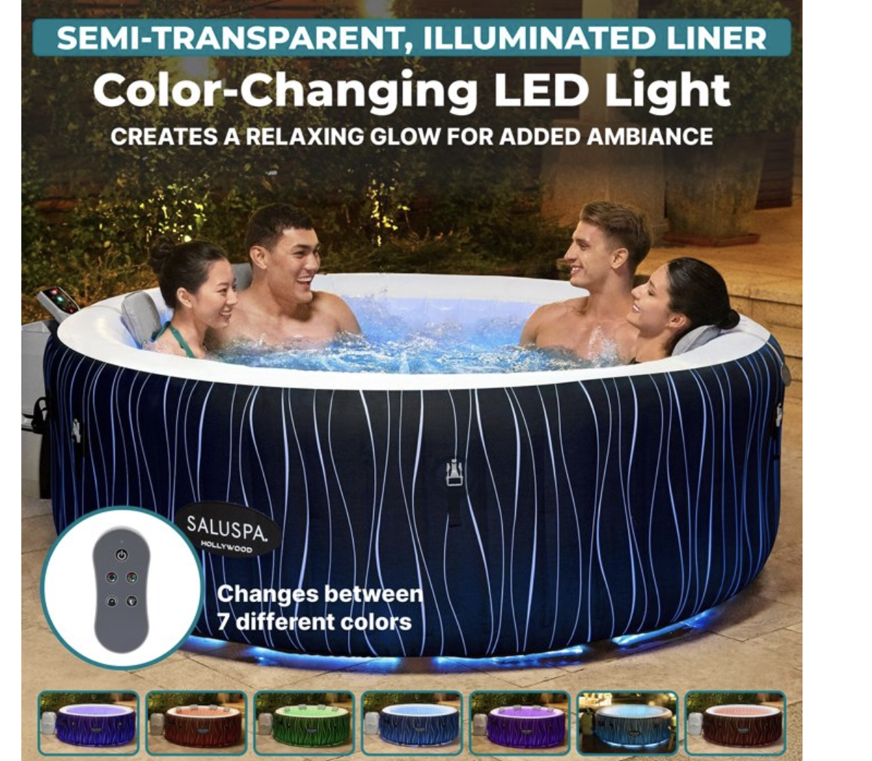 Brand new in box, SaluSpa Hollywood AirJet Inflatable Circle Hot Tub Spa with Color-Changing LED Lights 4-6 Person with Pump