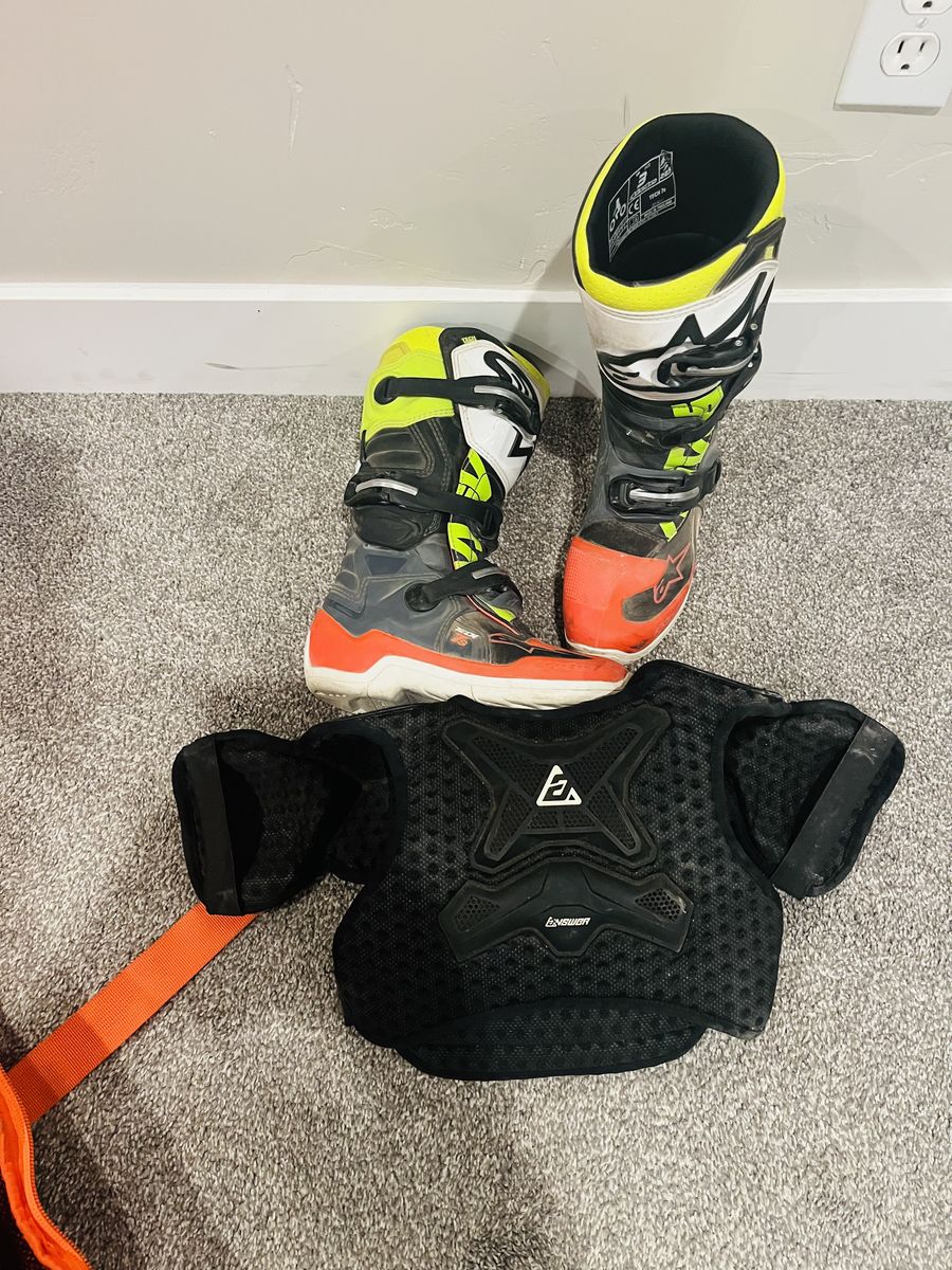 VenmoUsed about 3 times basically new Boots size 3 $80 Jersey pants combo $30 ea Chest protector $20 KTM official gear bag $150