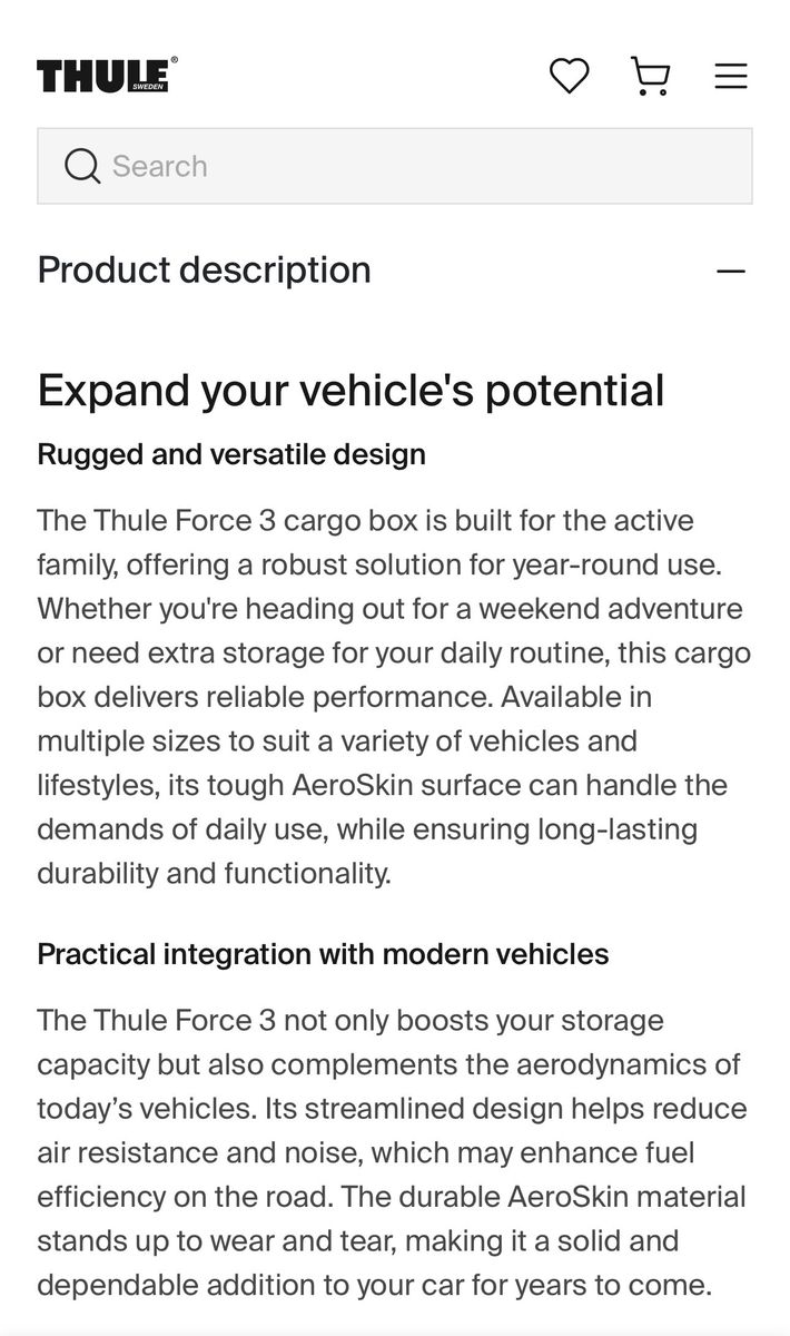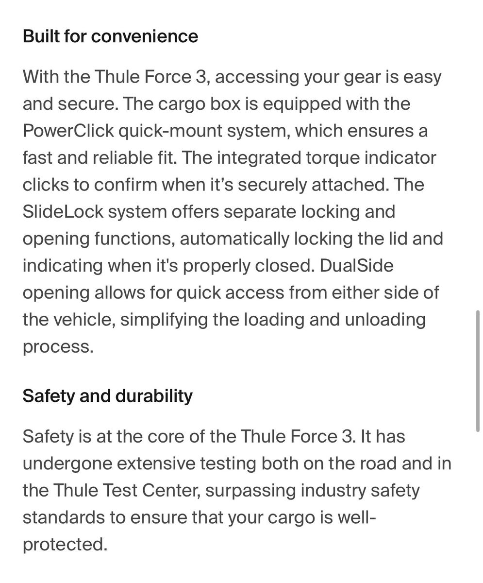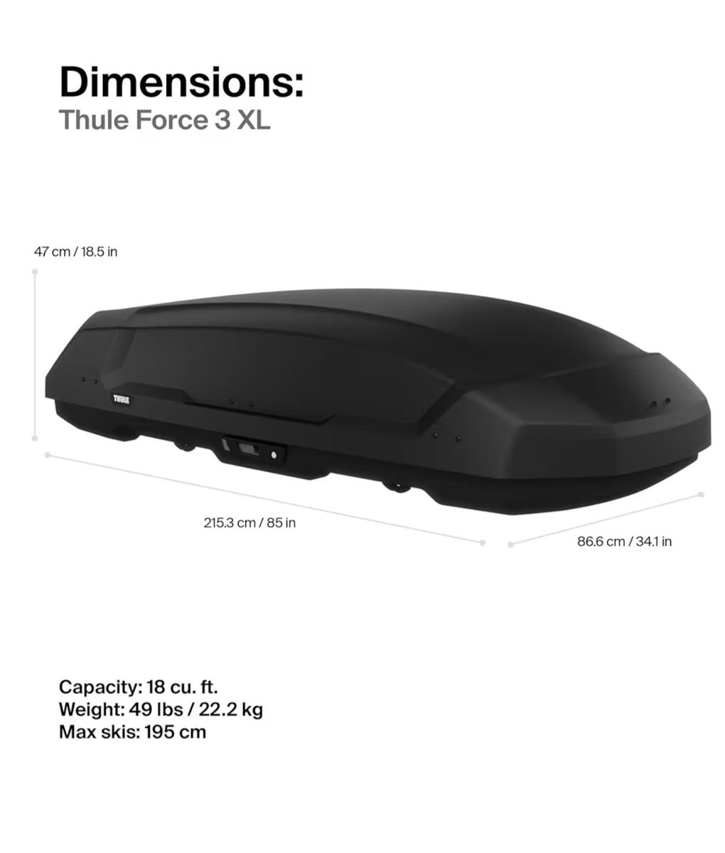 New in box Thule Force 3 XL US. Please see pictures for dimensions and additional information. 7325393