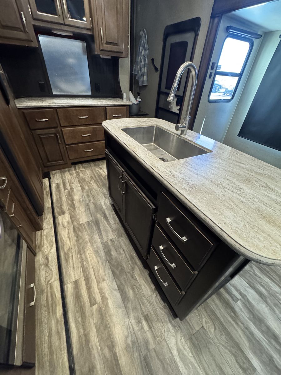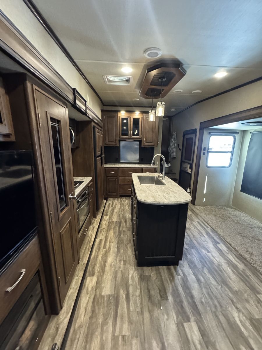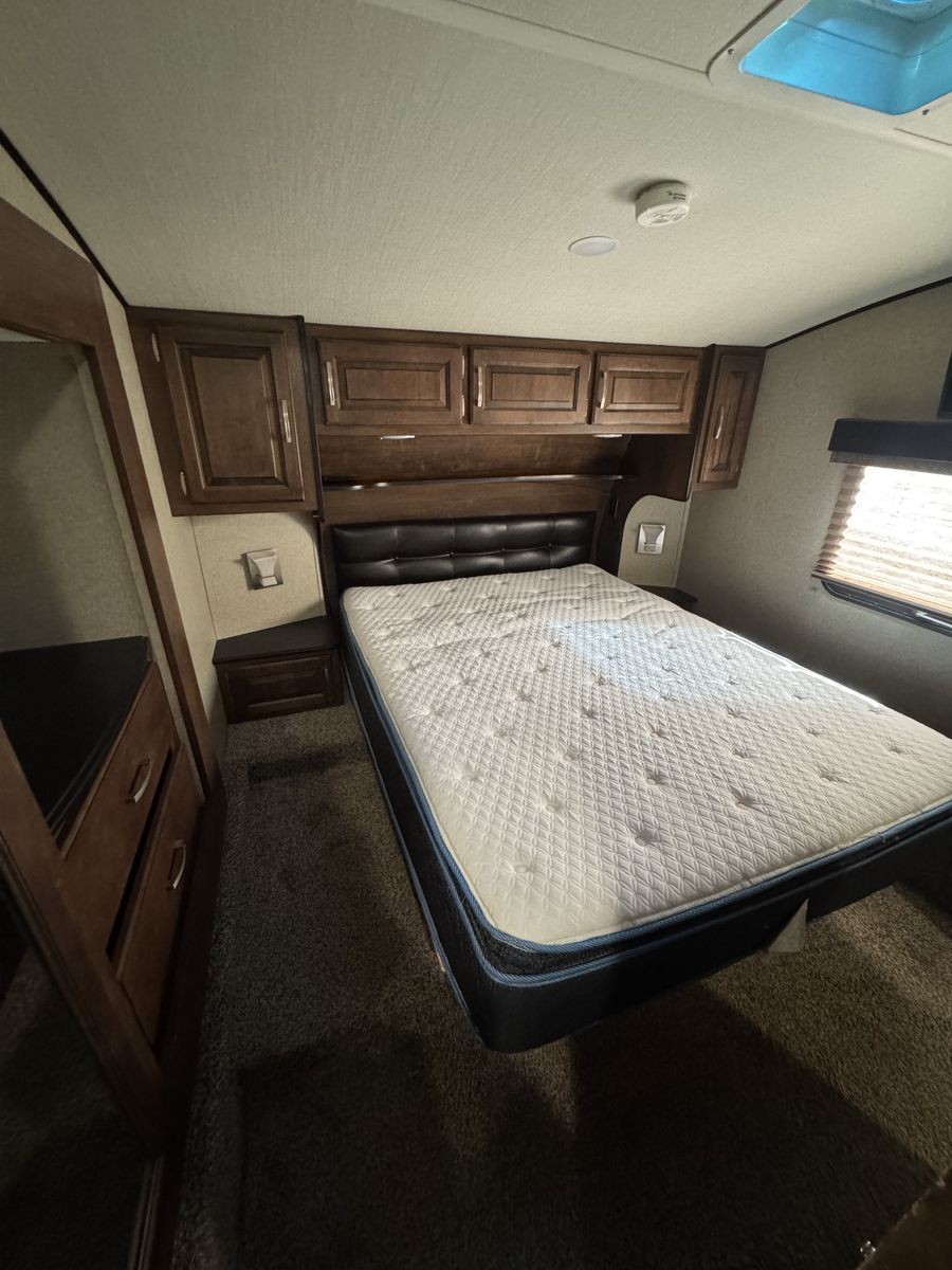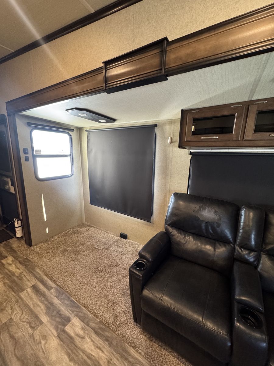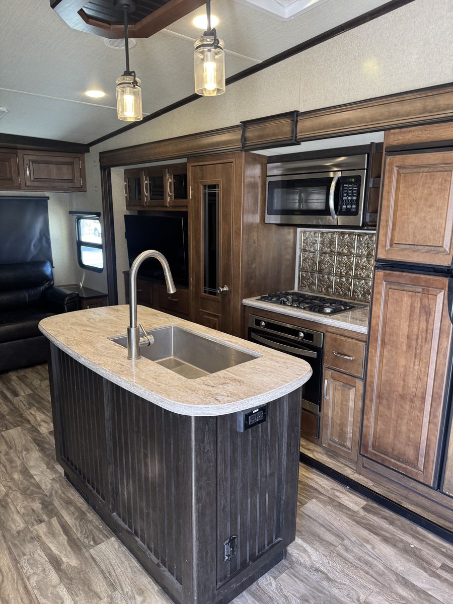 The 2018 Grand Design Reflection 303RLS is a luxurious fifth wheel trailer that offers a spacious and comfortable living space for travel enthusiasts. This model is designed with attention to detail and features high-quality materials throughout. The interior layout is thoughtfully planned to maximize space and functionality, with ample storage options and modern amenities. The living area is equipped with cozy seating, and a well-appointed kitchen with all the necessary appliances for a home-cooked meal on the road.