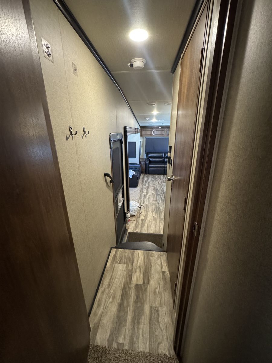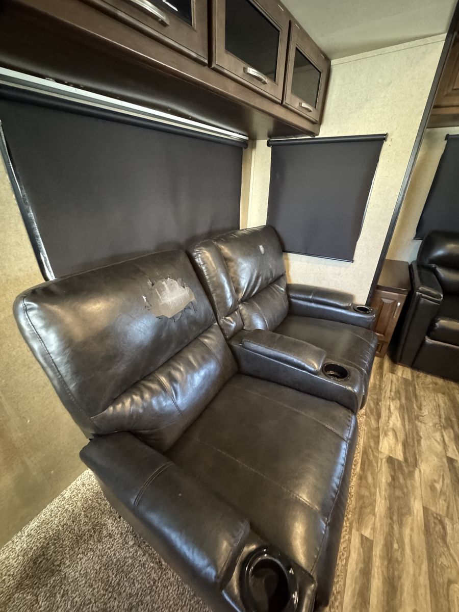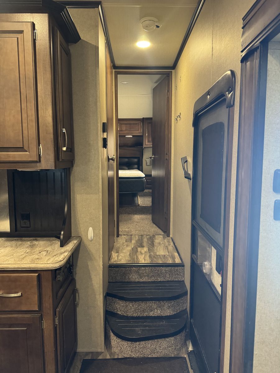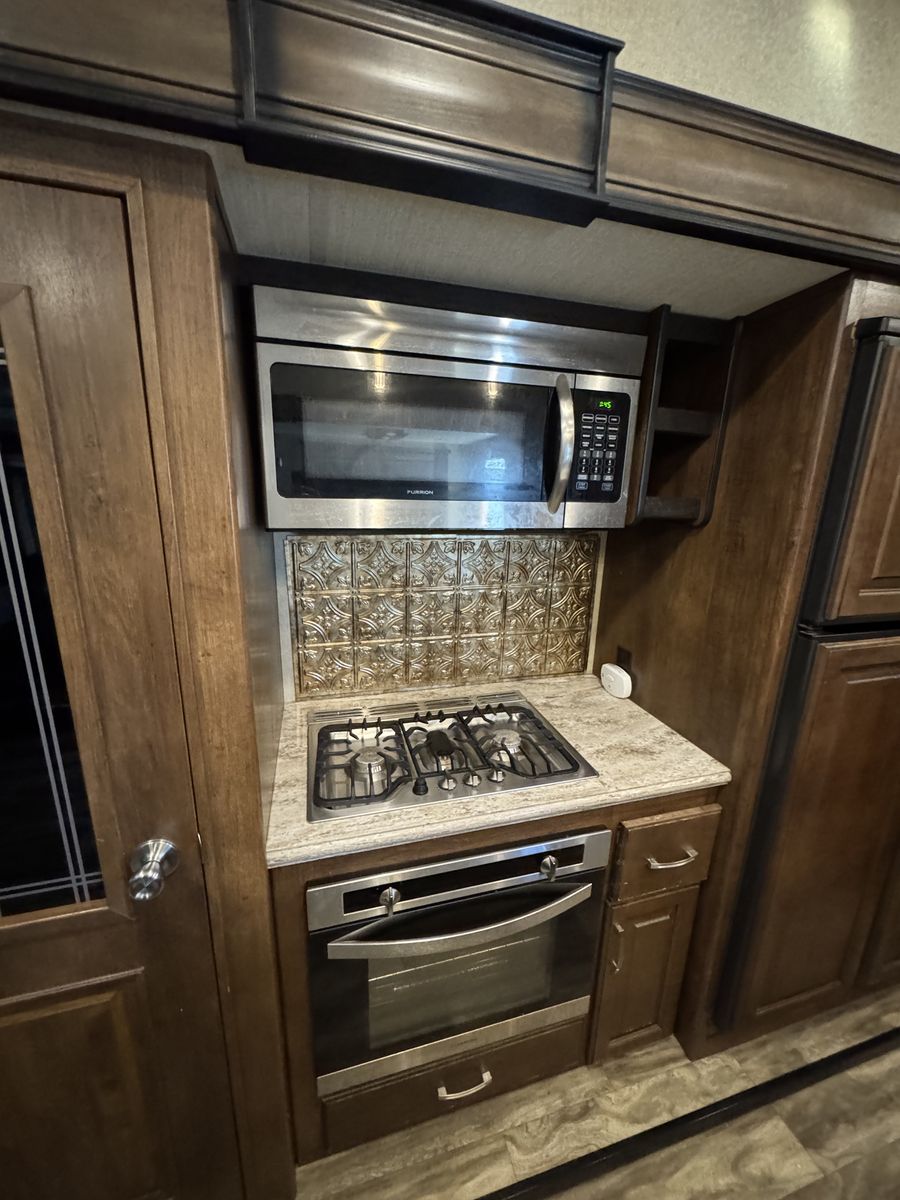 The 2018 Grand Design Reflection 303RLS is a luxurious fifth wheel trailer that offers a spacious and comfortable living space for travel enthusiasts. This model is designed with attention to detail and features high-quality materials throughout. The interior layout is thoughtfully planned to maximize space and functionality, with ample storage options and modern amenities. The living area is equipped with cozy seating, and a well-appointed kitchen with all the necessary appliances for a home-cooked meal on the road.