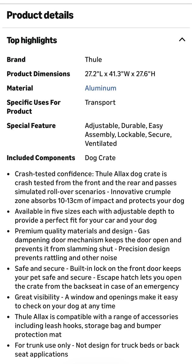New in box Thule Allax Dog Crate L. This is new but does have some minor scratches which doe not affect functionality. Please see pictures for dimensions and additional information. 91525269