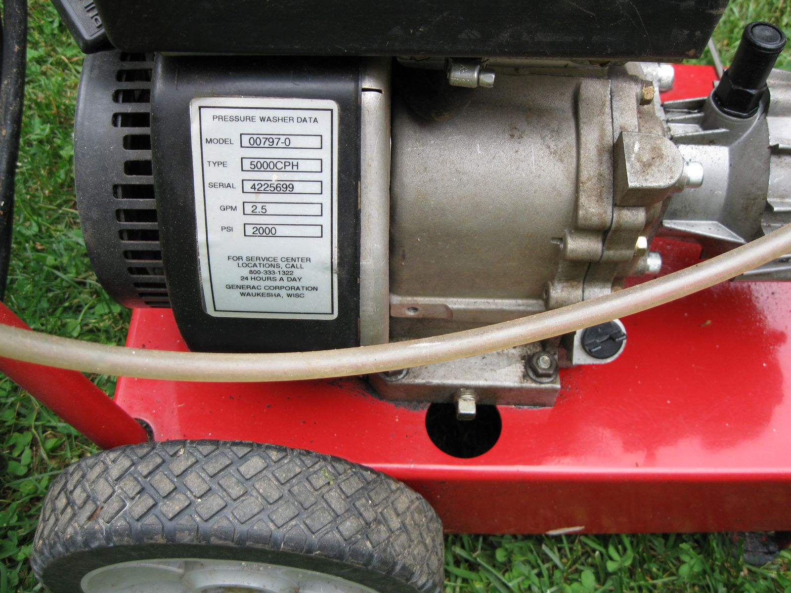 VenmoGenerac gas pressure washer. 5.5 HP Tecumseh motor - Motor runs good. Pump works but probably does not produce rate pressure of 2000 PSI/2.5 GPM. Wand valve is a replacement I fabricated from pipe and fittings. Good for occasional light work. $80 OBO