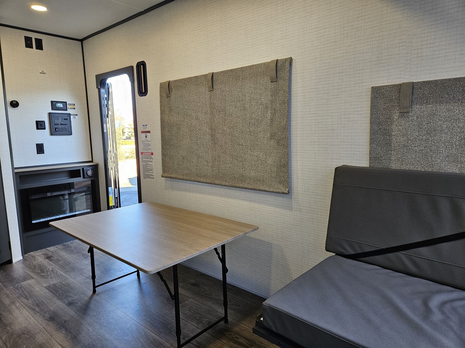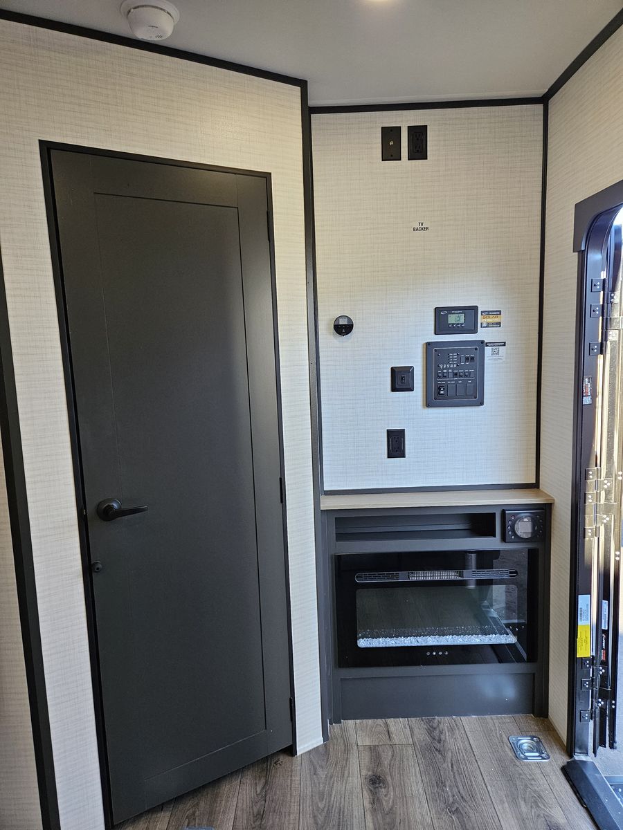 Fireplace that Gives Heat and Place for TV near Entrance Door!