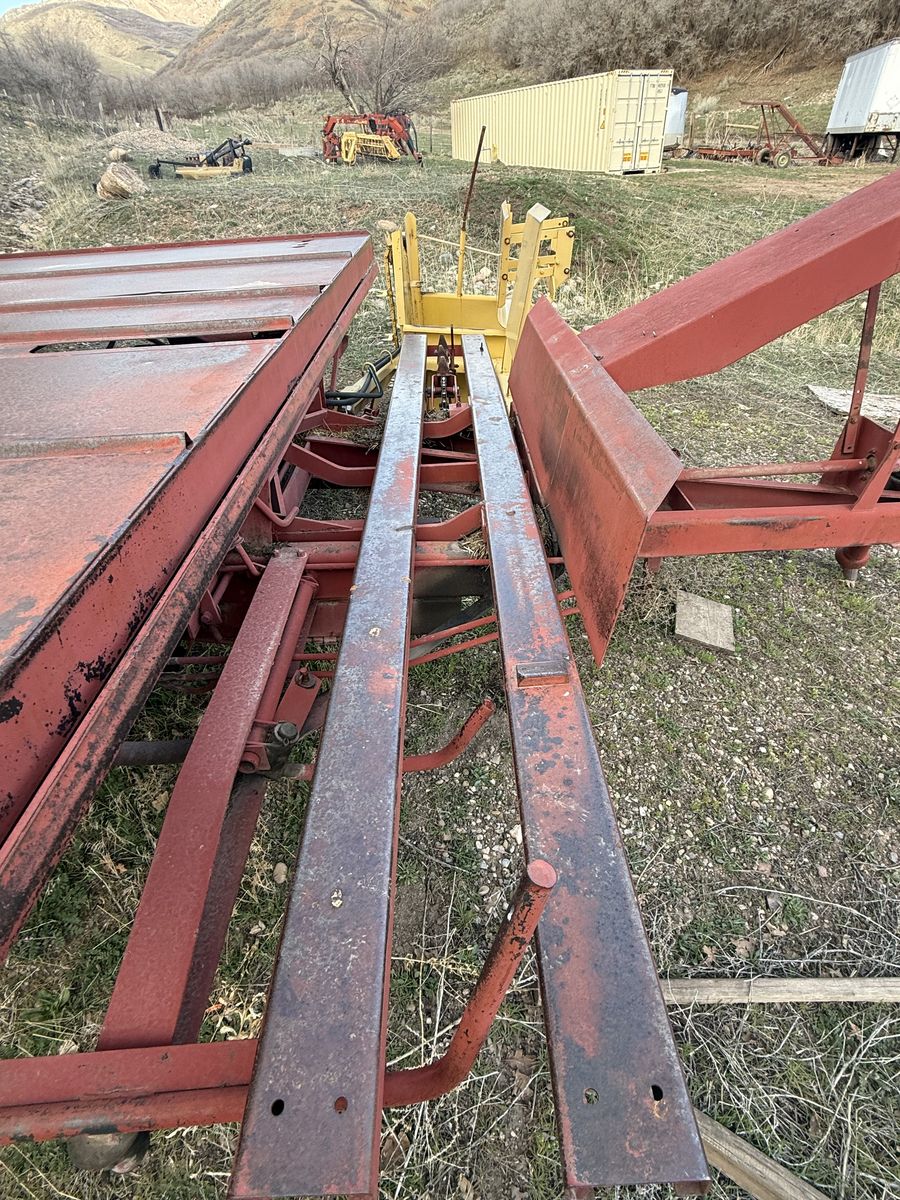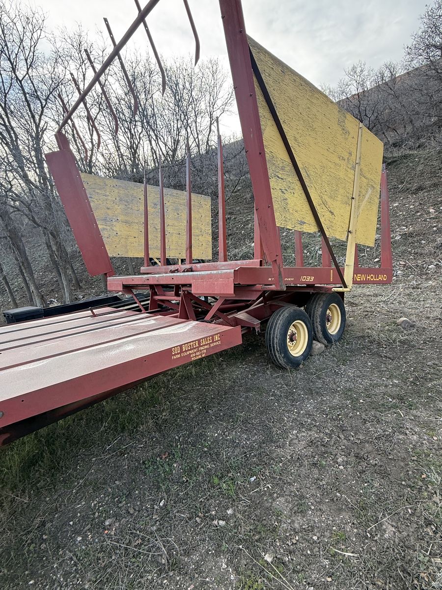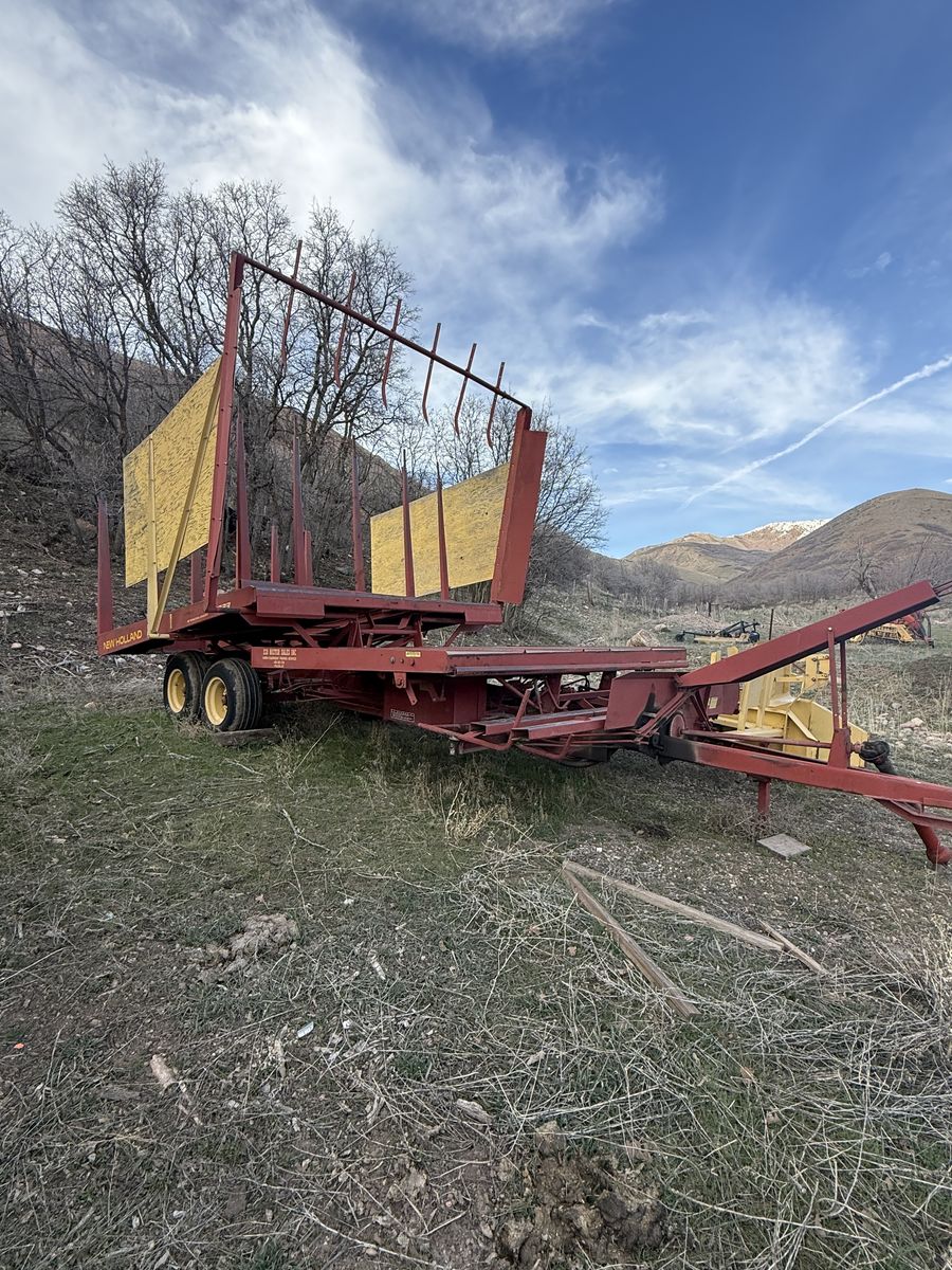 Nice bale wagon. Everything works. These things are classic machines. 105 small bales loaded, hauled, and stacked in 30 minutes. Stacks nice and tight if you get the tie rows done right.