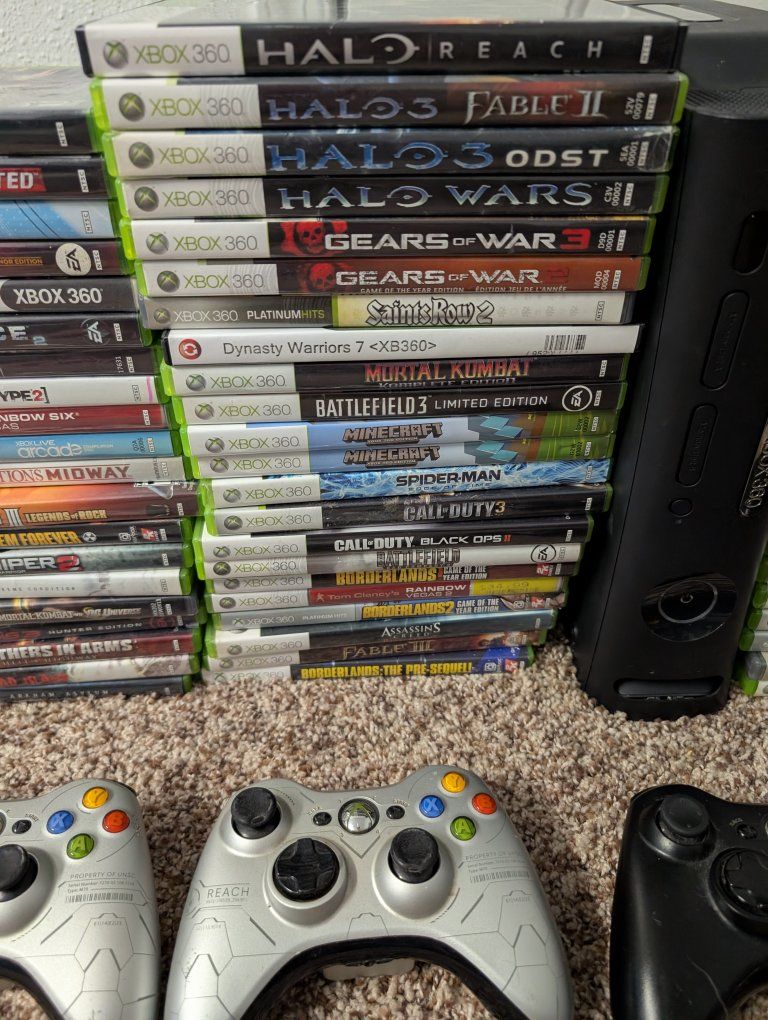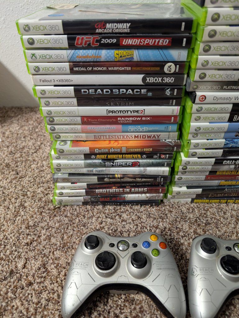 Selling my entire 360 Collection. Any and all 360 games seen here and some that aren't posted in photos. Includes all the wiring and controllers shown (halo reach editions + regular wired and wireless)