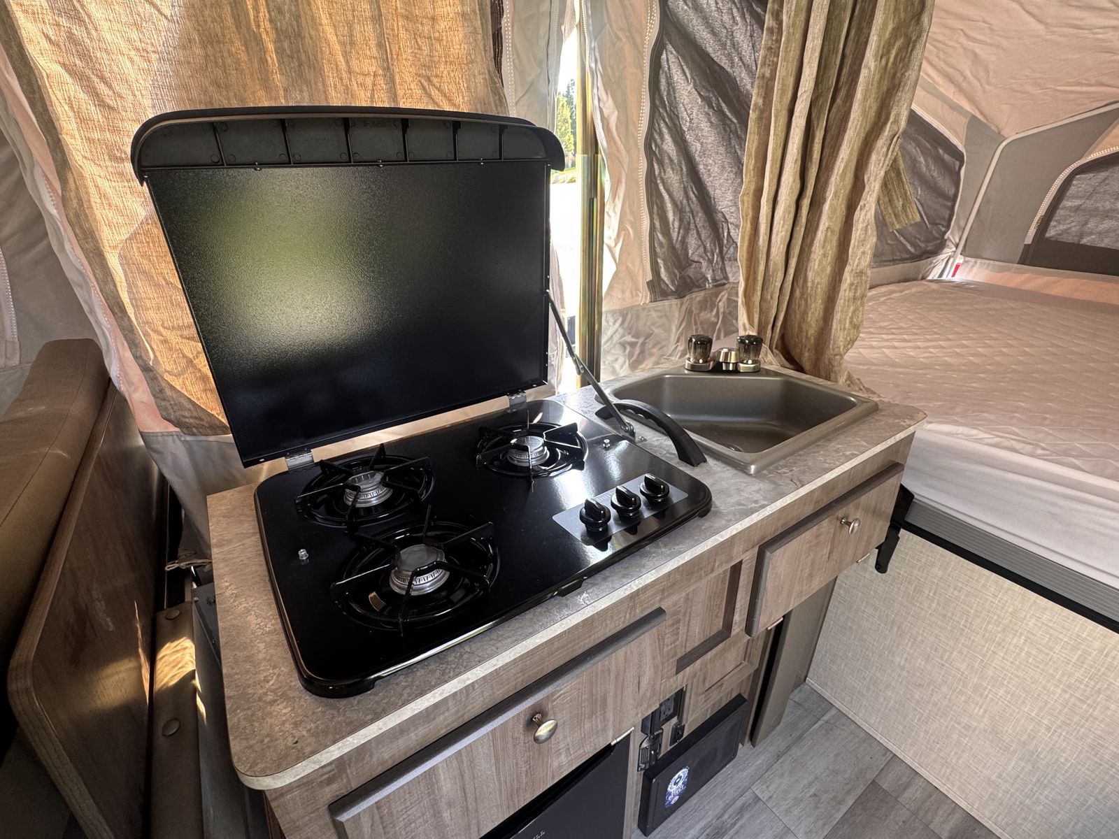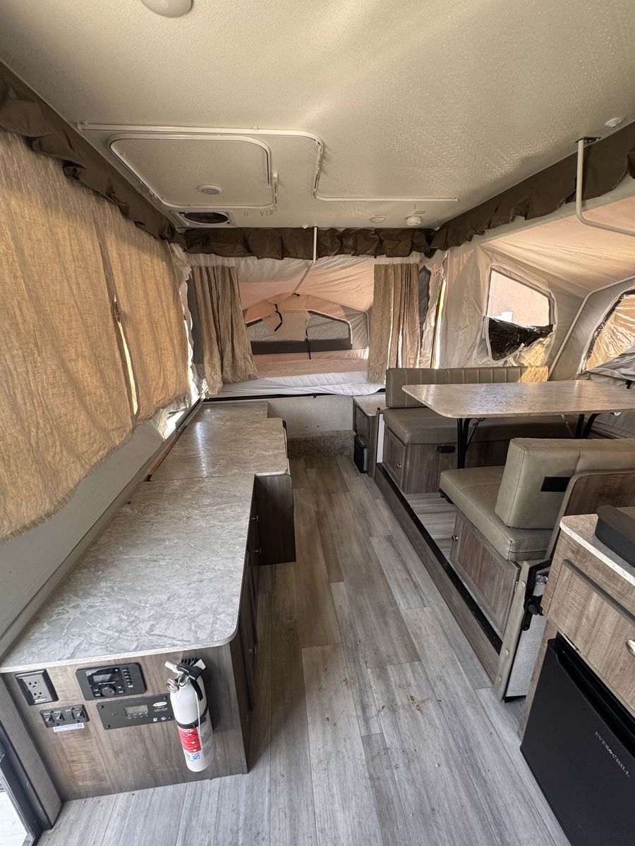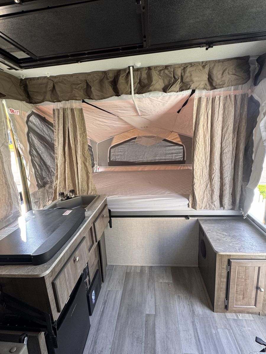 2023 Rockwood 232 ESP with cargo deck, solar, shower, oven inside oven, outside grill, heated mattresses, sound system, full LED lighting, outside shower. Full kitchen slide out!! Only used one time when new. One owner. No trades. Please call asap it will go fast