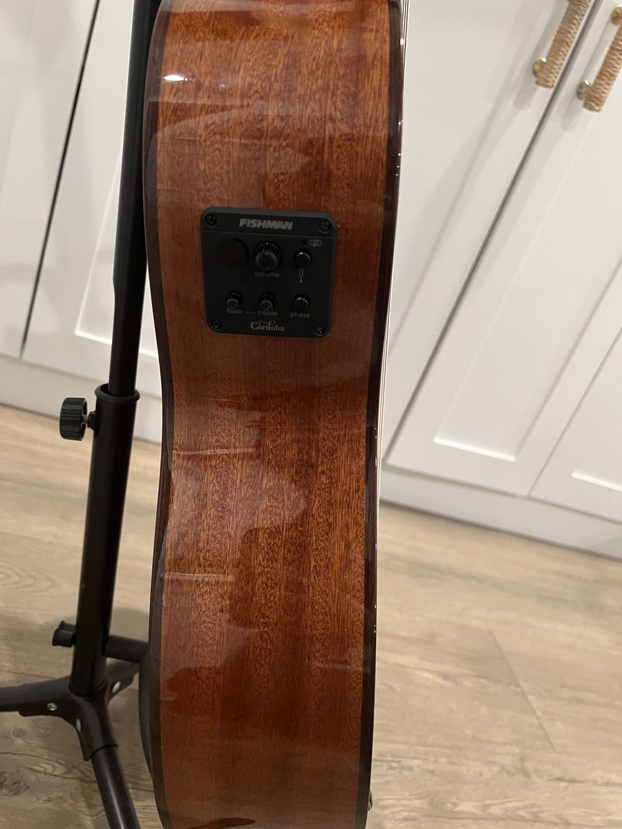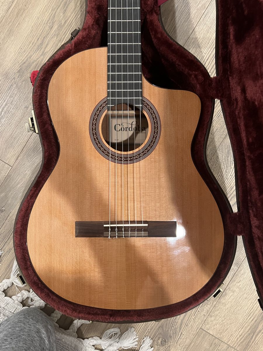 Owned for about a year, in excellent condition. Has a fishman pickup with a built in tuner. Solid canadian cedar top. Comes with Cordoba Humicase. Guitar has been kept in case and properly humidified.
