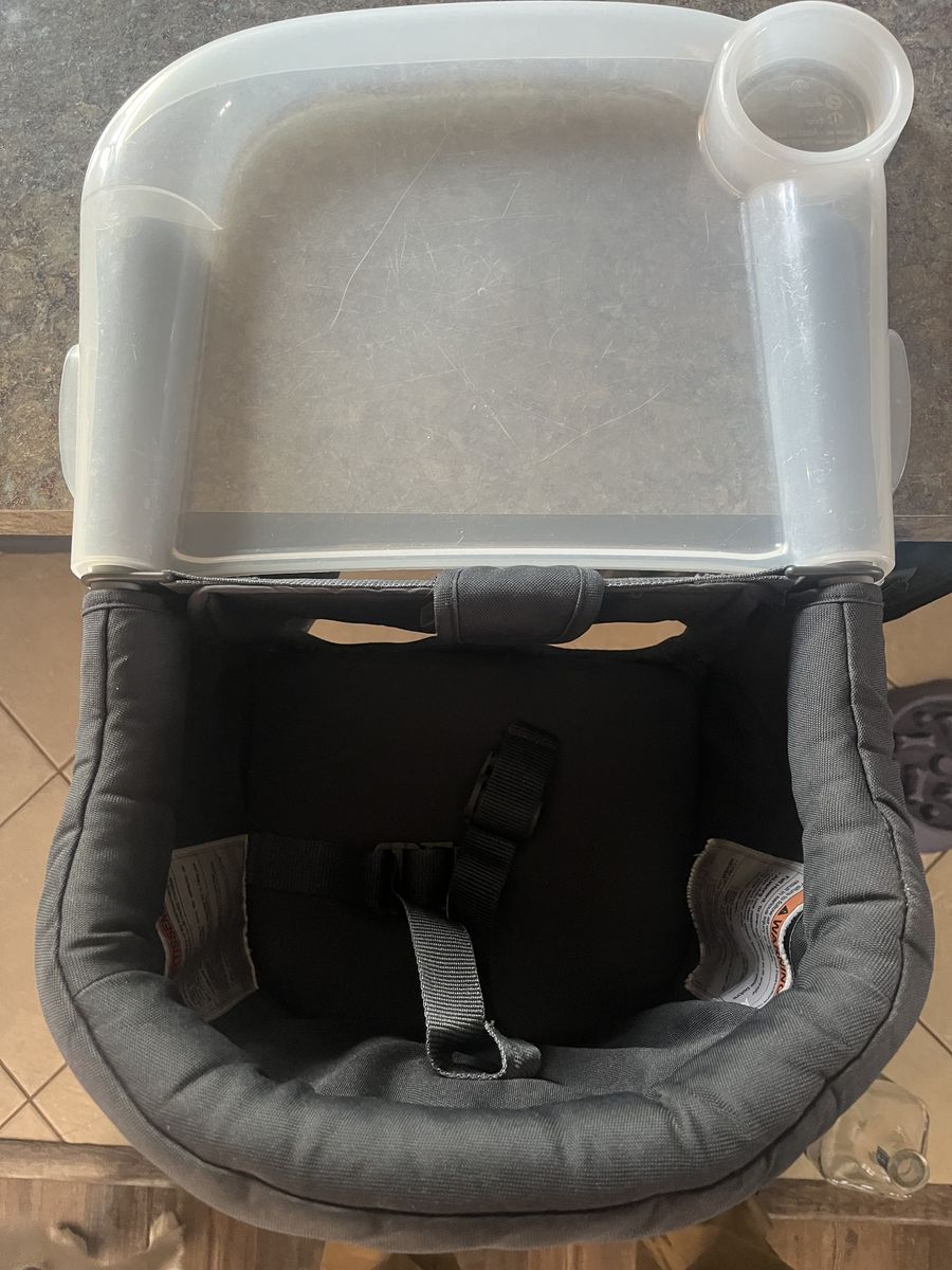 PayPalFull package retails for over $100. Perfect condition chair that connects to counters and tables. Comes with add on tray. Has safety straps and covers for arms. No rips or tears. Holds up to 40 pounds and 3-36 months. Portable and collapsible. Keeps tables scratch free.