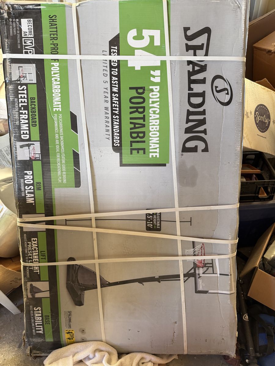 Spalding 54" polycarbonate basketball stand brand new in the box. $200. is $349 at Walmart.