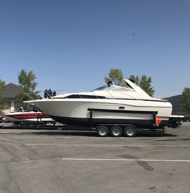 Engine (x2) Mercury 454 7.4 L V8 Sterndrive Bravo 2, roughly 450 hours on each engine. Boat is older but in good shape. Engines run strong. Trailer works but could use some repair.