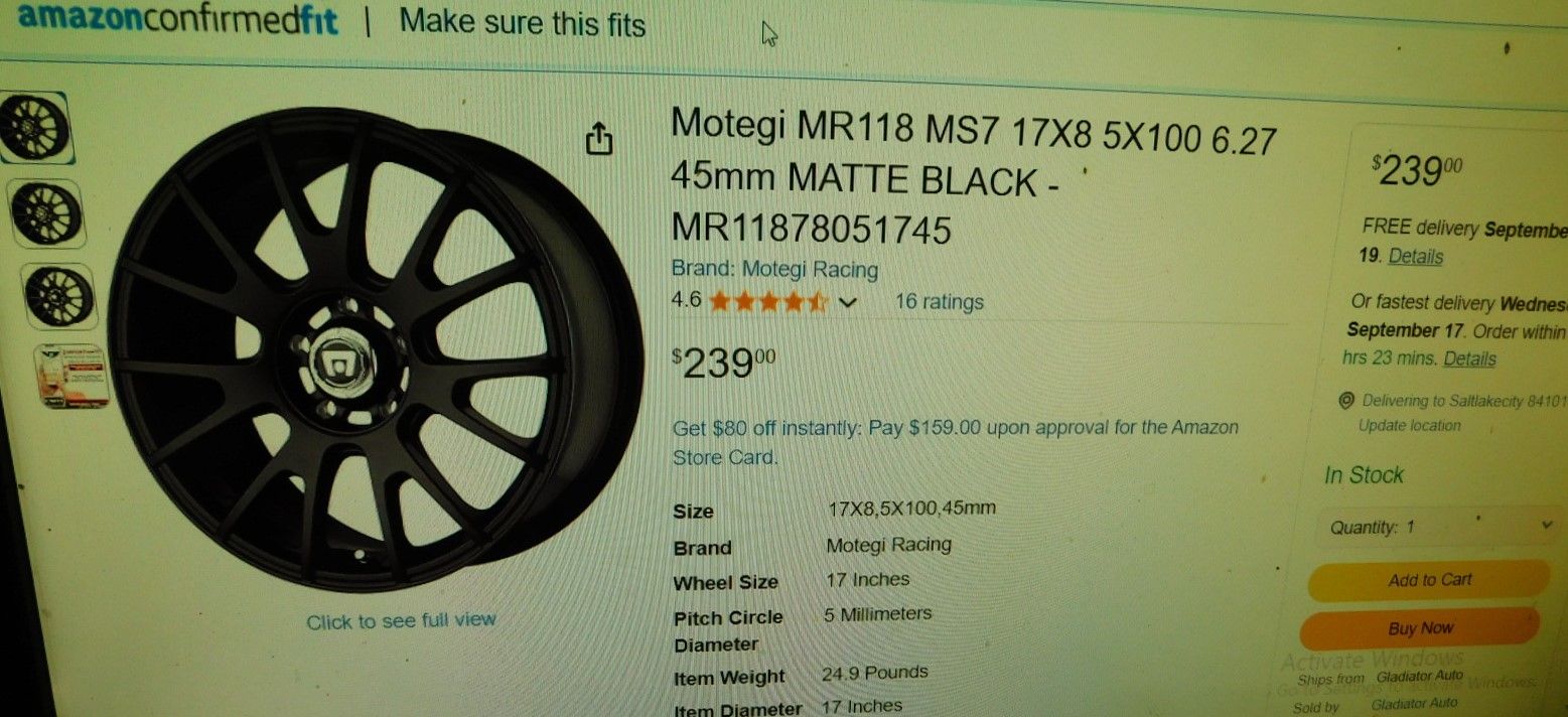 Set of 4 17x8 Inches Motegi blac rims lug pattern 5x100mm or 5x3.93 inches no bent no dent or scratches $300 must see