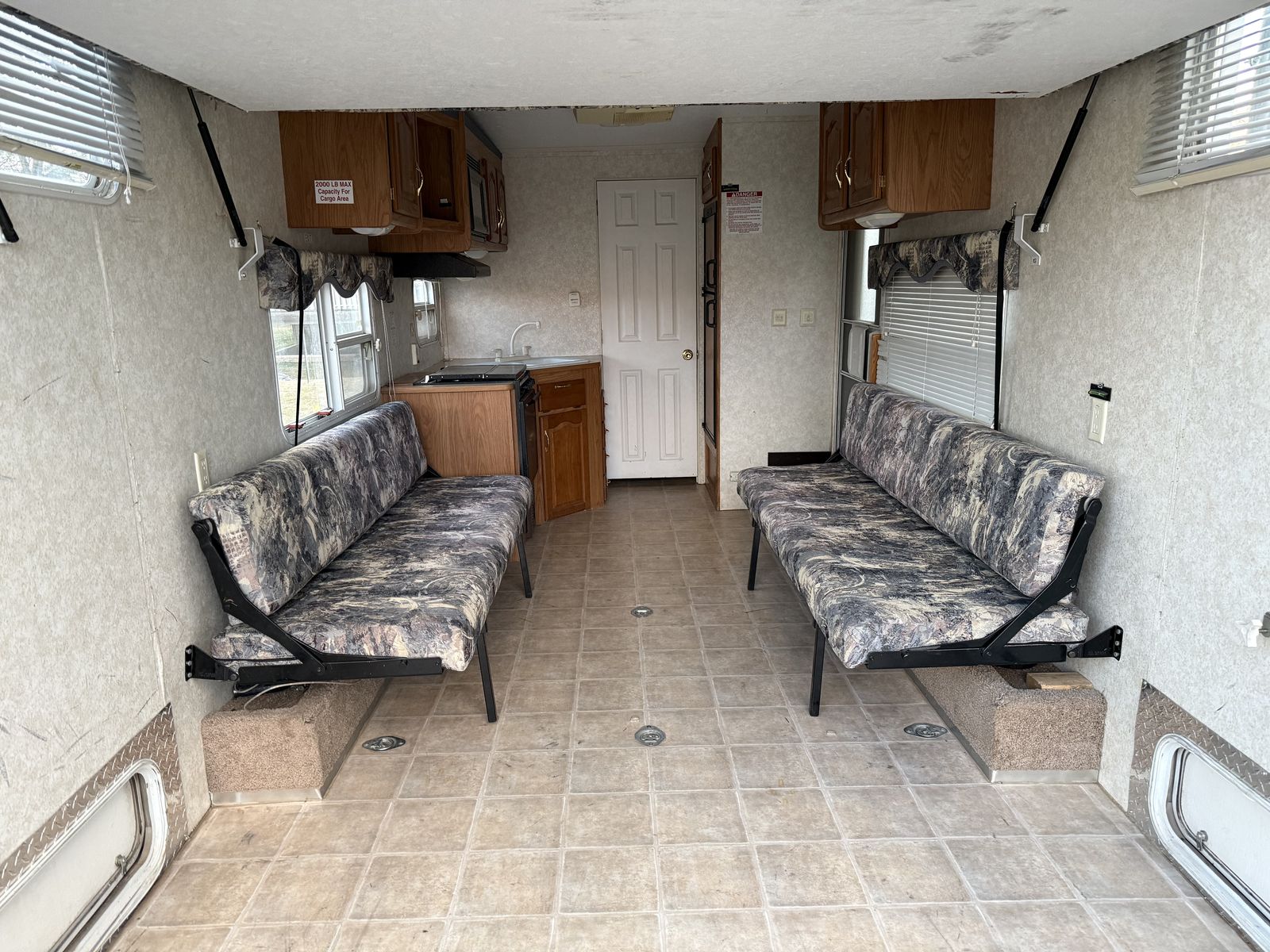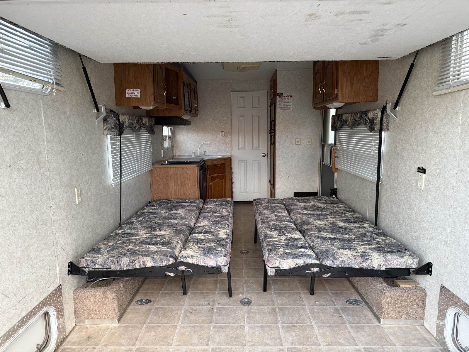 Cons: -Awning fabric needs replaced, arms are in working condition -Generator will sometimes quit with changing or heavier loads. Needs a tune up -Minor dings and scuffs from loading toys and having kids in the trailer with normal use.