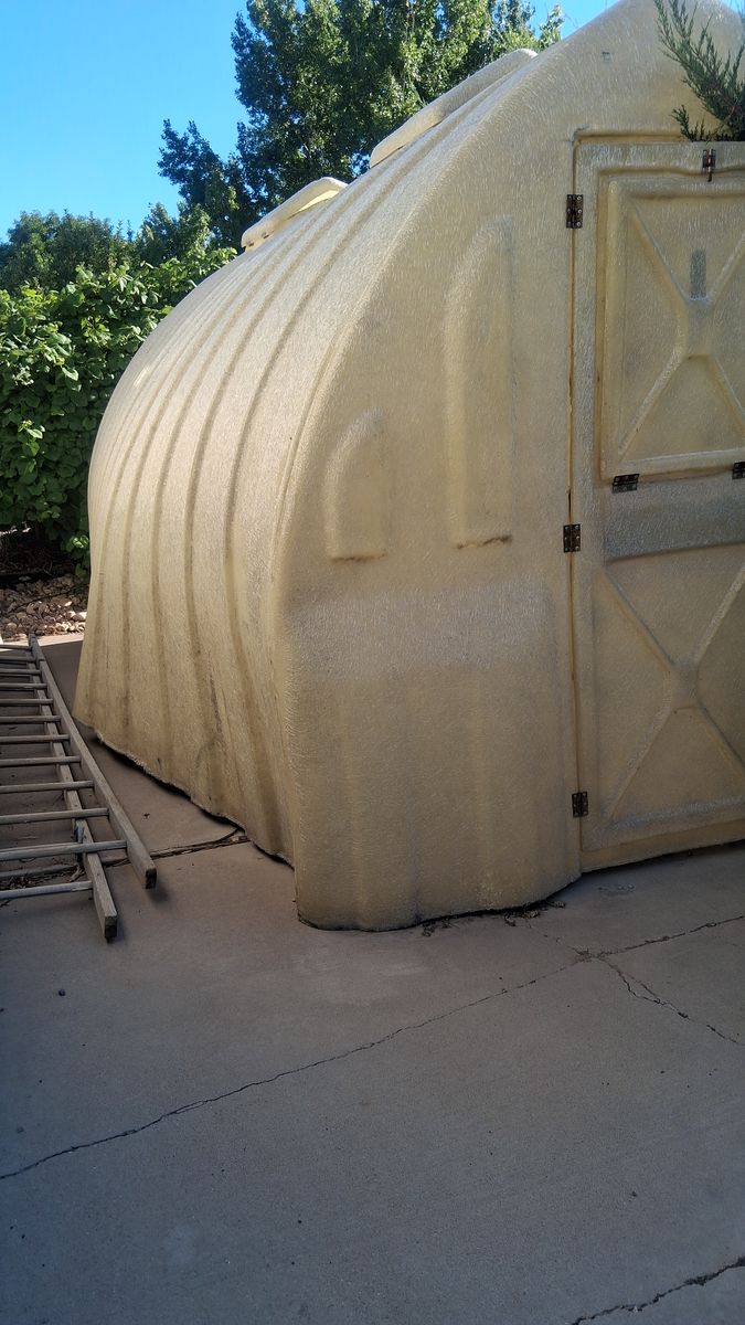 ZelleFiberglass Greenhouse 15' x 8' x 8'. Door with window that opens, also window at other end of greenhouse. Fourth picture is only to show window, contents are not included with the sale of the greenhouse. 2 vents that open with changing temperature in the roof plus a planting tray. No leaks. Will have to be picked up in Delta, Ut.