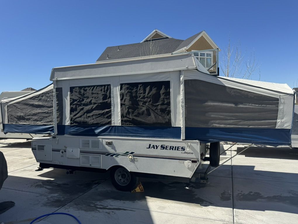 VenmoClean 1008 Jayco model in beautiful hard to find condition! Fully loaded model Full bathroom/shower enclosure huge king bed up front. Double bed in rear, Plus a table that folds to a twin bed Outside shower/inside shower Tons of storage - huge durable storage box up front for gear that is in perfect condition with secure latches Diamond plate front and rear to protect the body from damage/rock chips or randomly hitting things while towing canvas and screens are in amazing condition No pets or smoking All curtains on excellent shape Roof is in perfect like new condition it has never leaked and the storage box is in outstanding shape 19k btu Thermostat controlled heater. 3 way fridge works great Co2 detectors Bunk overhead lights/fans Comes loaded with camping supplies water hoses Two 5g propane tanks Brand New $130 interstate deep cycle battery toilet with holding tank - needs new cartridge Shower enclosure can be taken down when not in use and hidden away Tires and spare are in excellent condition Electric brakes Bearing buddies on the axles for quick servicing- no need to pack bearings! You cannot beat the overall condition, quality build and room of a well taken care of Jayco model. The crank is smooth and effortless and the beds slide in like butter Jayco has always built popups that easily go 30+ years with heavy use with even poor maintenance. This is in great shape for its age Pre wired to add AC in seconds. can be added so easily in front storage access