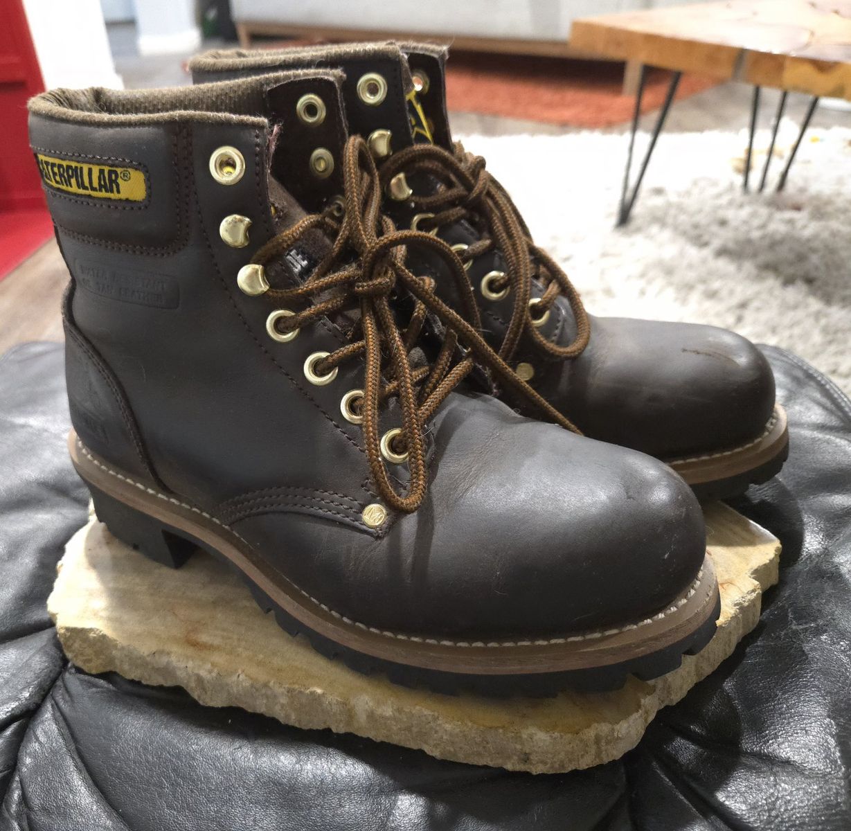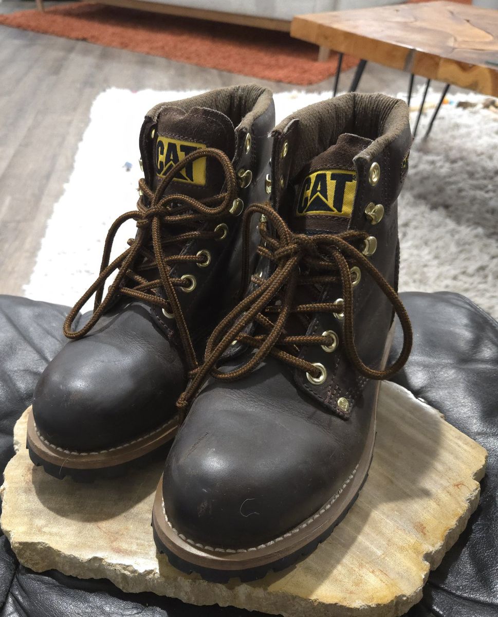 VenmoRare Vintage Find: Time-Capsule Condition Up for sale is a stunning, authentic pair of Caterpillar (CAT) Second Shift Steel Toe Boots from the late 1990s. These have been carefully stored in a climate-controlled environment for 25 years and are in "New Old Stock" condition—virtually impossible to find in this state today. Unlike modern re-releases, these vintage boots feature the superior leather quality and heavy-duty construction that made CAT a legend in workwear. Product Details: Era: Late 1990s (Original "Licensed Merchandise" yellow tag). Size: Women’s 8.5 Wide (USA) | 6.5 (UK) | 39.5 (EUR). Color: Dark Brown Oil-Tanned Full Grain Leather. Safety: Steel Safety Toe (ANSI Z41 PT91 rated). Construction: Classic Goodyear Welt (stitched sole for maximum durability). Hardware: Heavy-duty gold-tone hexagonal eyelets and speed hooks. Condition Report: Upper: The leather is incredibly supple, rich in color, and shows no cracking or dry rot. Outsole: 100% tread life. The rubber "nubs" are still visible on the bottom, indicating they have never seen pavement. Interior: Clean tags and footbeds; zero odors or signs of wear. Why these? Whether you are looking for compliant safety gear for the job site or a high-quality vintage piece for a 90s/grunge aesthetic, these boots offer a level of durability that modern manufacturing rarely matches. They are built to last another 25 years.