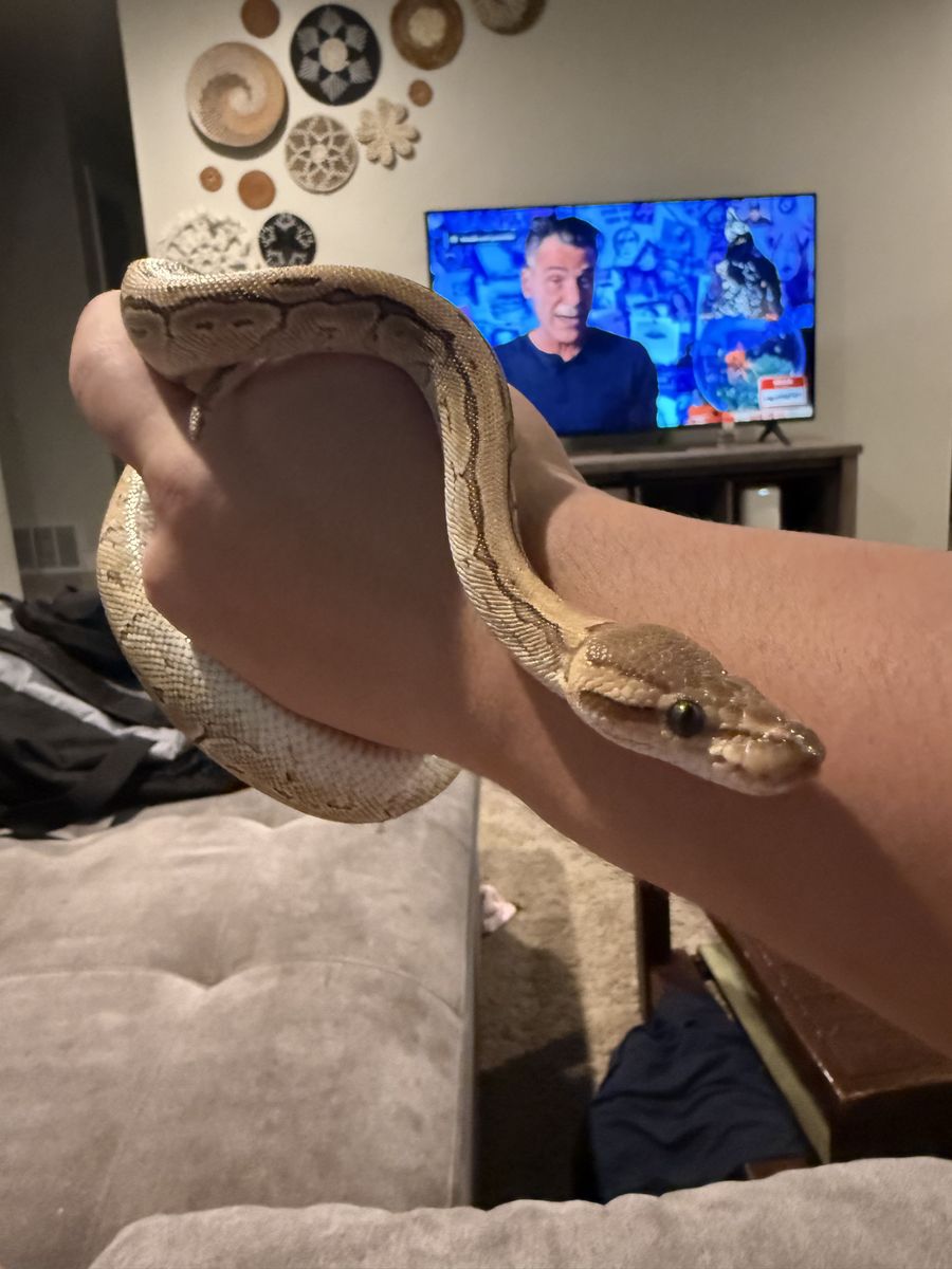 VenmoSelling my 1 year old old ball python. She is the largest ball python I’ve seen for her age she just turned one and is already very large. I would expect her to exceed 5 foot. She eats a large mouse either frozen thawed for live once a week. She is very active and has never struck at me once. I keep her in a 4x2x2 with a hot/basking side at 90 and a cool side at 72, I’m selling her bc I’m moving in a few months and can’t take her with. I would prefer someone has a 4x2x2 because she is going to get very large. Feel free to text with any questions. I don’t have a set price I’m more concerned she goes to a good home. I got her for 350 at PetSmart but am willing to take way way less if u have a proper home. Thank u!