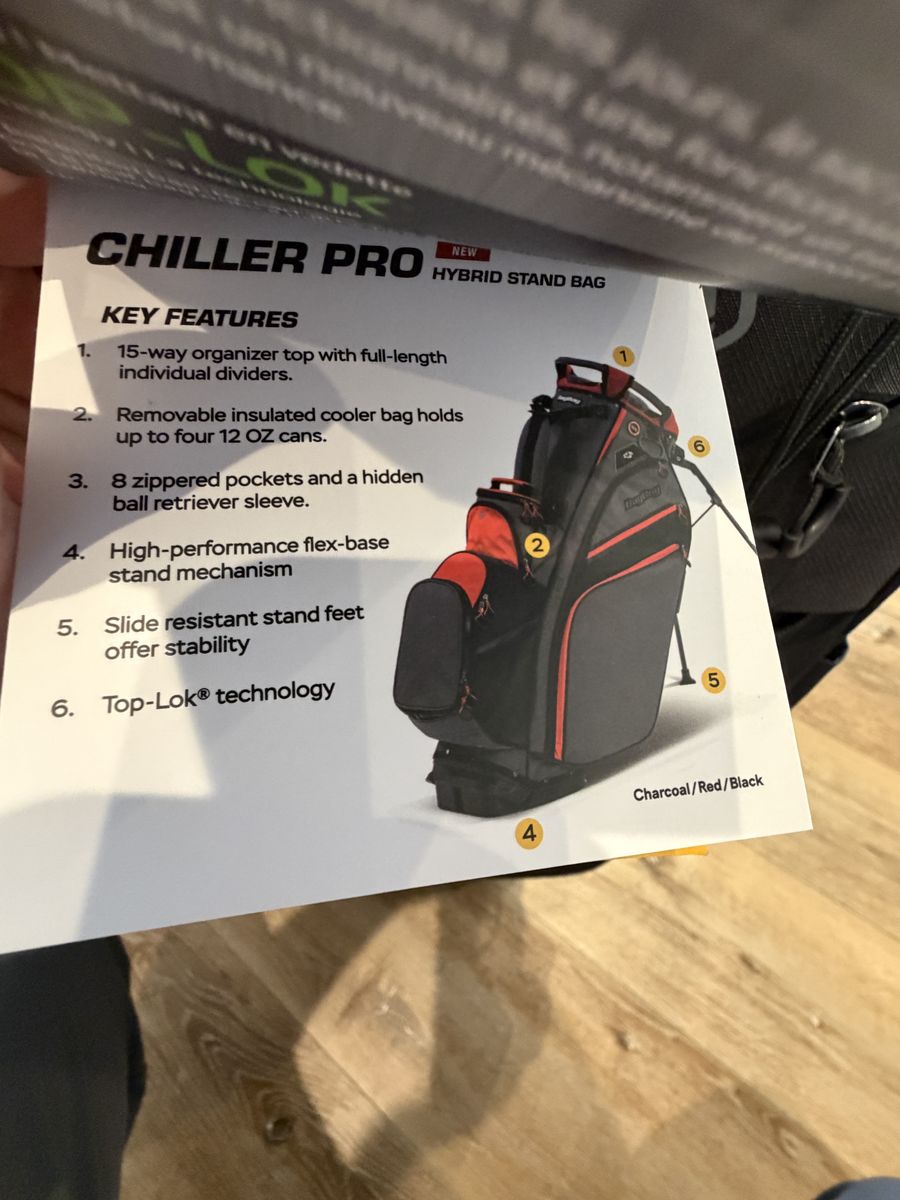 VenmoRetail is about $250 with tax The Chiller Pro Hybrid is a stand golf bag with cooler space for four cans—because walking the course shouldn’t mean warm beverages. This stand bag includes a removable cooler that holds up to 4 cans, so you can keep your drinks cold and close by. Lightweight, versatile and easy to carry, it’s made for golfers who like to mix walking, pushing and riding.