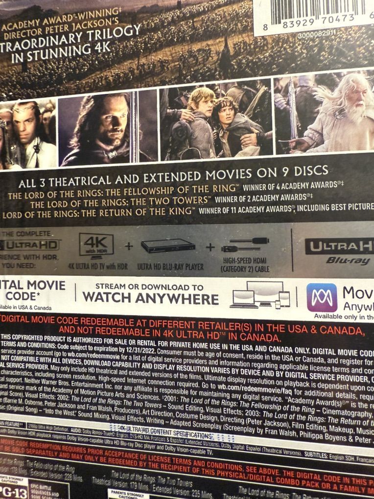 Lord of the Rings 4K collection 75$ OBO.