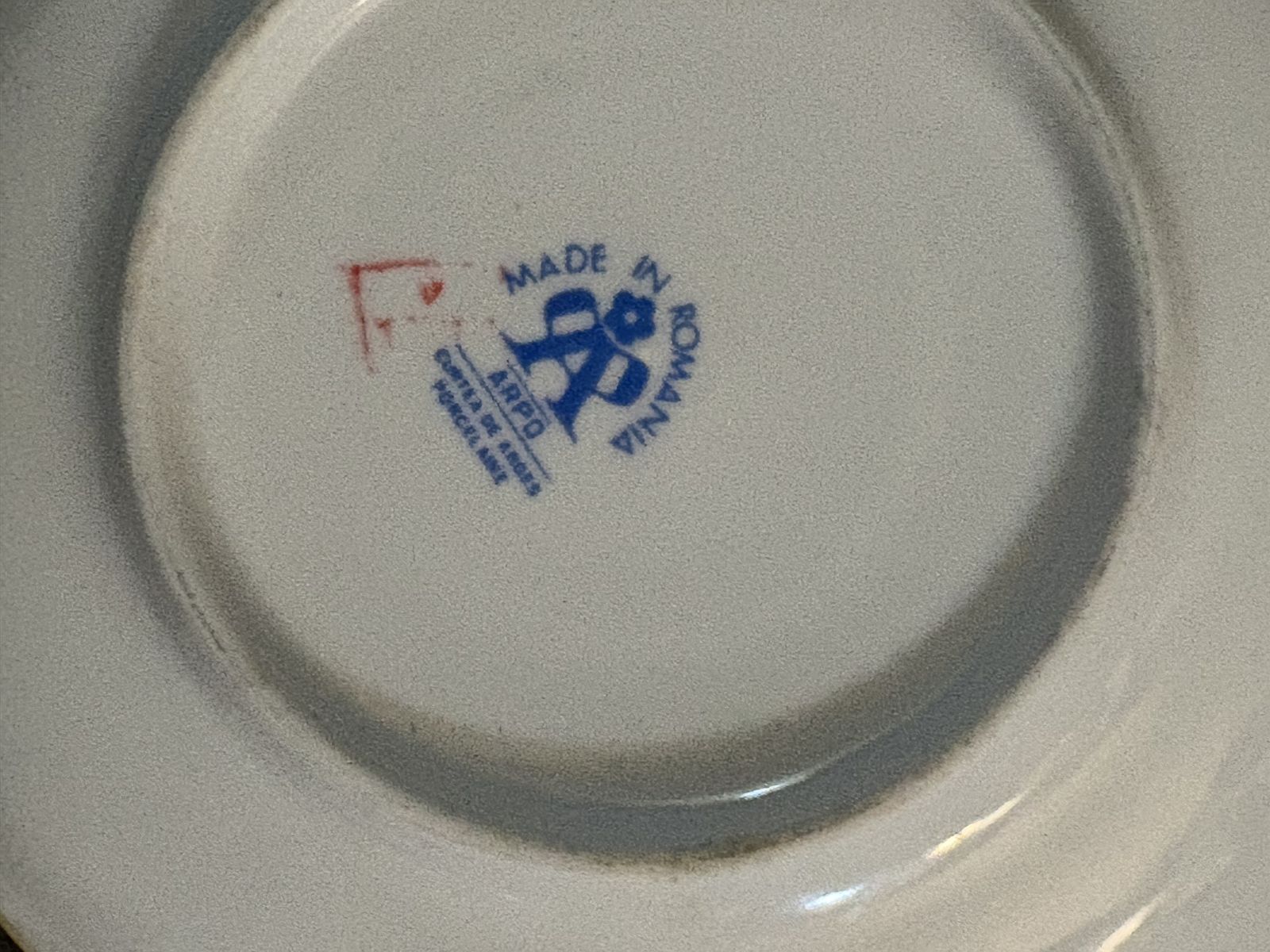 Venmo6 vintage porcelain saucers/small plates. These vintage porcelain saucers were produced by ARPO (Argeșana Porțelan) in Curtea de Argeș, Romania in the 1970’s. No chips or cracks Measurements: 6 in x 6 in