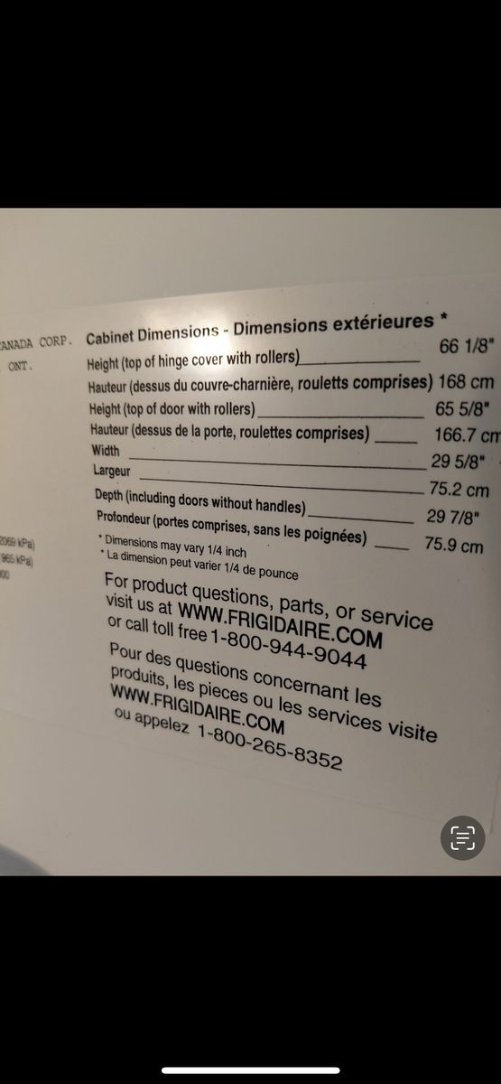 VenmoFrigidaire Fridge.. In great condition. Has some small dents on freezer door, can see in picture. Has always worked great, no longer need. See last picture for size. OBO. Best to text!!