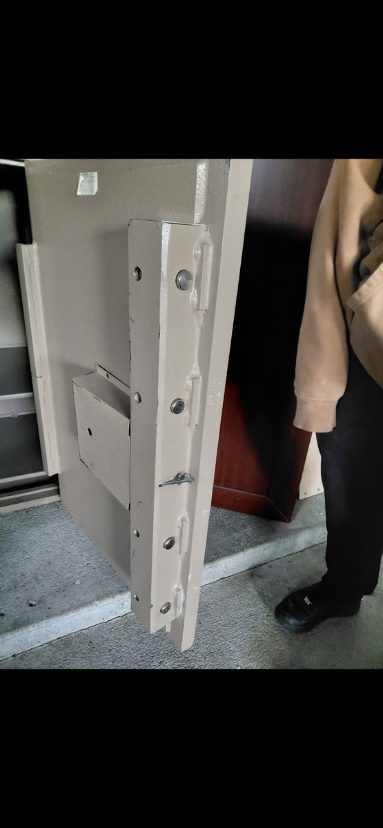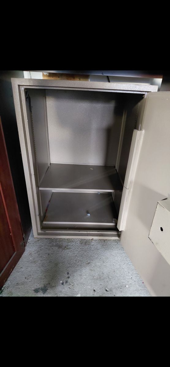 VenmoSize: 26 inch. Wide 37 inch. Tall 26 inch. Deep 1 inch. Hardened steel 4 bolt door Has a 4 digit set code. This safe weights more than 1,000 lbs.