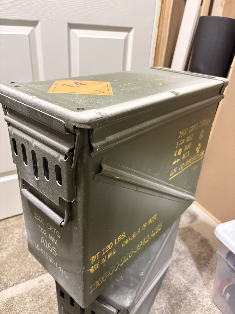 ApplePayGreat ammo cans, not bent or jacked up, just decluttering a little. They can hold 1500 rounds of 7.62. $25 each or $40 for both