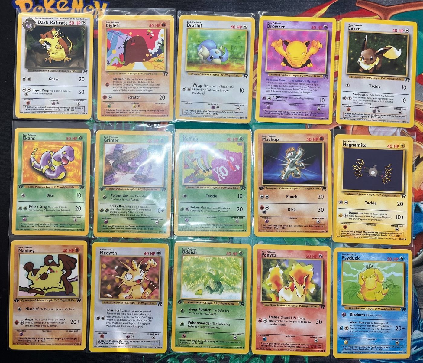 VenmoSelling a lot of Pokémon cards from the Team Rocket set (Wizards of the Coast era). These are original vintage cards from the early Pokémon TCG years featuring classic Team Rocket Pokémon like Dark evolutions and other fan favorites.