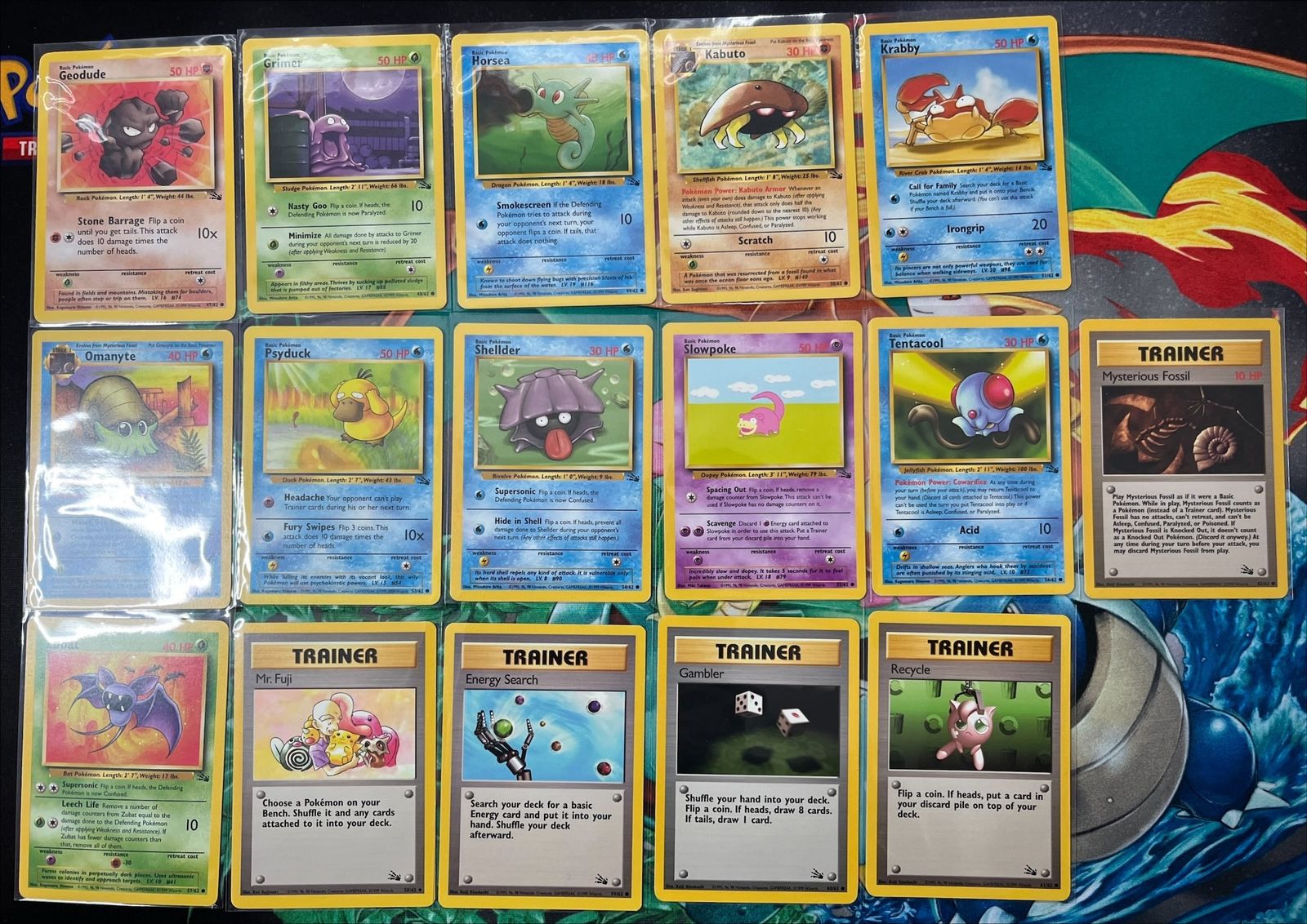 VenmoSelling a lot of 31 Pokémon cards from the Fossil set (Wizards of the Coast era). These are original vintage cards from the early Pokémon TCG years.