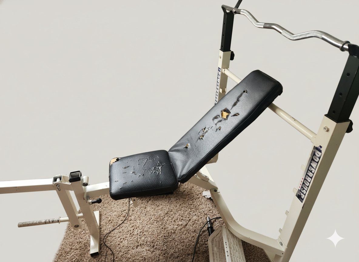 All equipment is solid and fully functional. Bench has cosmetic wear as seen in photos but works great. It's hardly been used in 10 years. Perfect for beginner to intermediate lifters/ garage gym setup.