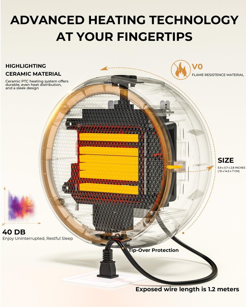 CashAppPortable Electric Heater with 2S Fast Heating & PTC Ceramic, Tip-Over and Overheat Protection.