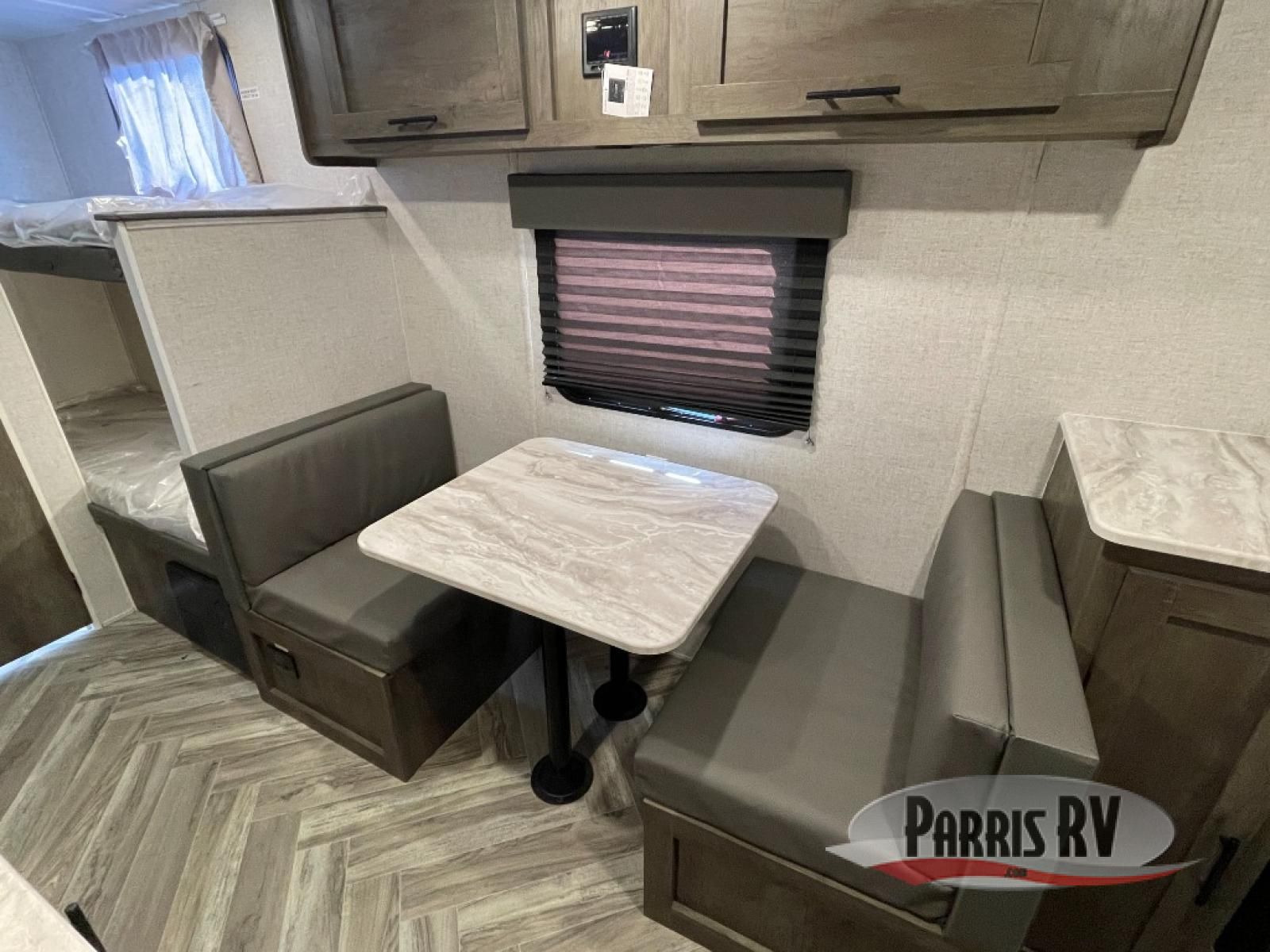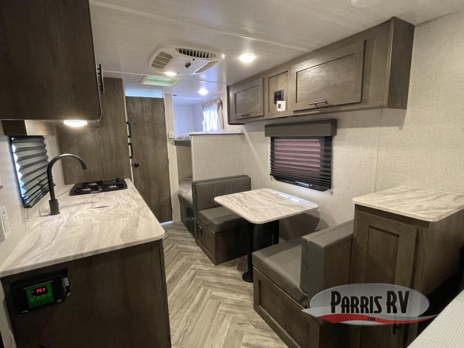 The kids or your friends will ask you to take them camping every chance you get in this EVO Select travel trailer that includes bunk beds! Convenience is found throughout including having a rear toilet and shower room for privacy that is next to the bunks, and a booth dinette to dine at, read a book while sitting, and/or sleep on. Prepare breakfast on the two-burner cooktop before heading out to find some trails, and when you're ready to call it a night, the front RV queen bed will provide a great night's rest.