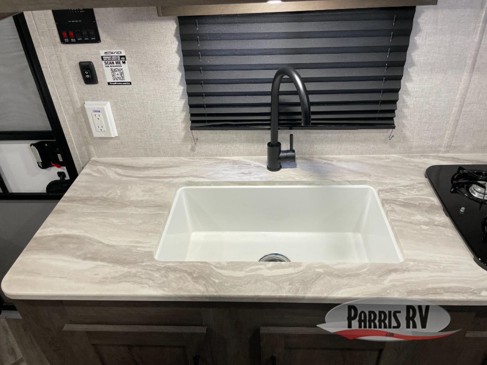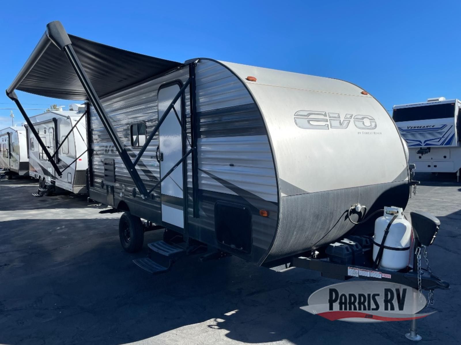 With any EVO Select travel trailer or toy hauler by Forest River, there is an Exterior Convenience Package that offers a double entry step, a friction-hinge entry door, an XL grab handle, and magnetic latches on baggage doors. You will find several upgraded features such as the Tuffcoat aluminum exterior, the large baggage doors, and the appliance package. You will also love the flooring design, the seamless countertop, the high-rise kitchen faucet, and more. All you need to do now is decide which EVO Select model you want!