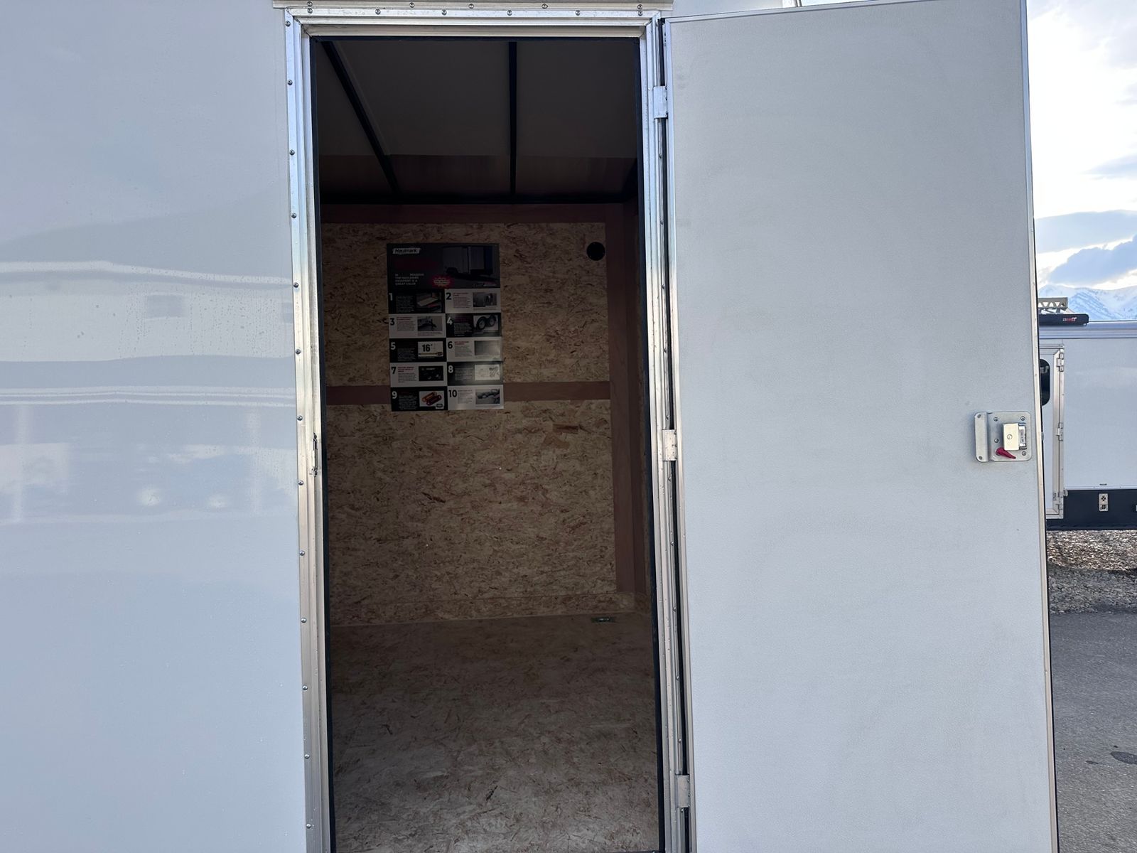 V-Nose Profile 12V Dome Light (1) 24" Starbright Stoneguard SIdewall Vents Floor Mounted D-Rings (4) Top Wind Jack with Sand Pad Safety Chains Entire Chassis Undercoated Smooth Aluminum Flare Fenders LED Exterior Lighting (Clearance Lights & Brake Lights) 5.2mm Lauan Interior Sidewall Liner 16" OC Vertical Posts 24" OC Floor Crossmembers 24" OC Roof Bows