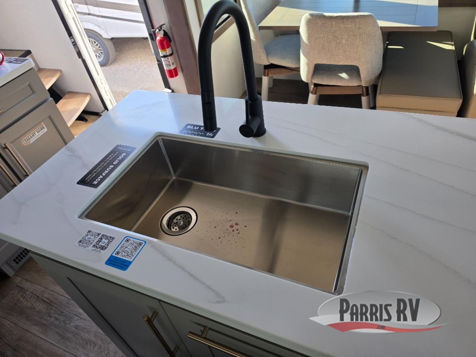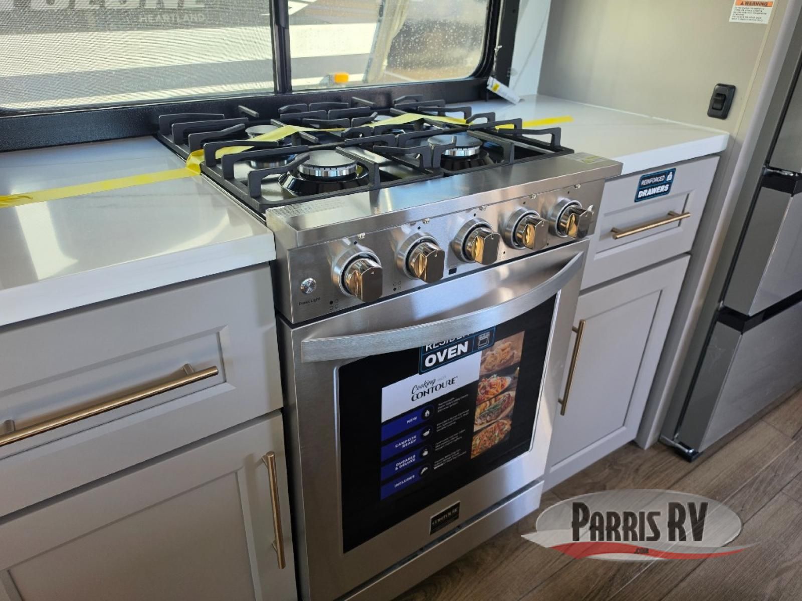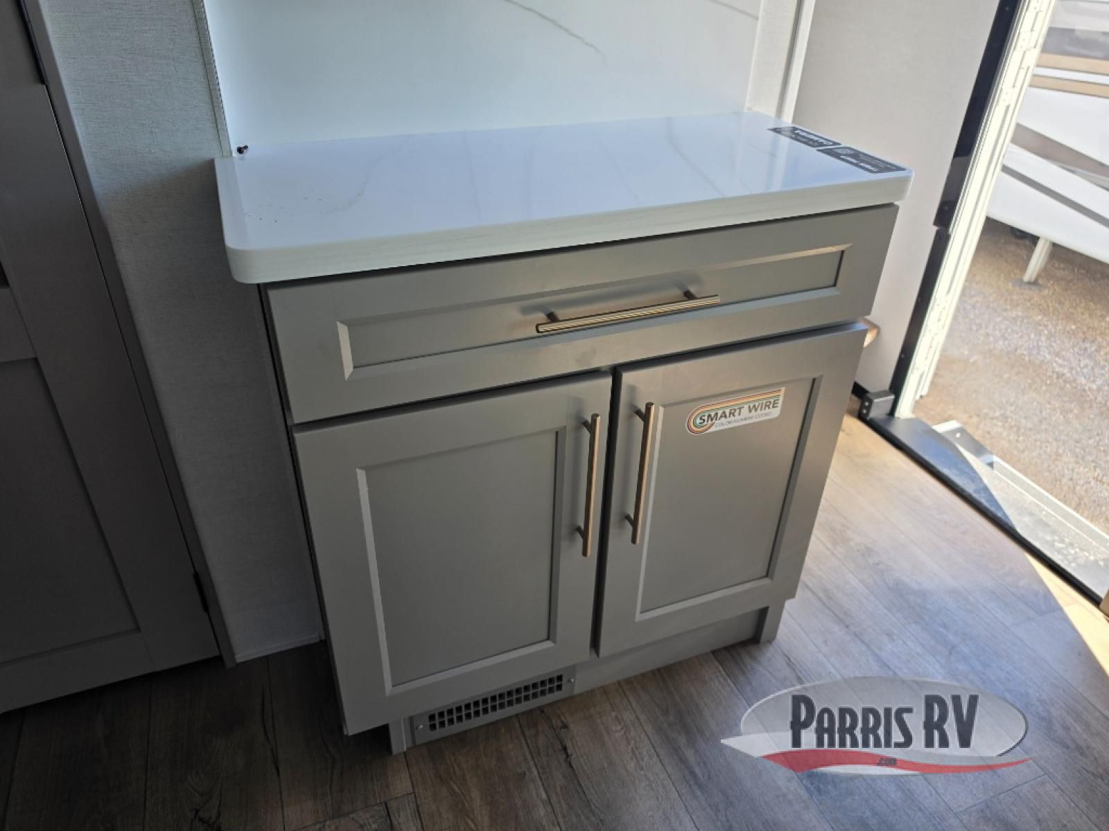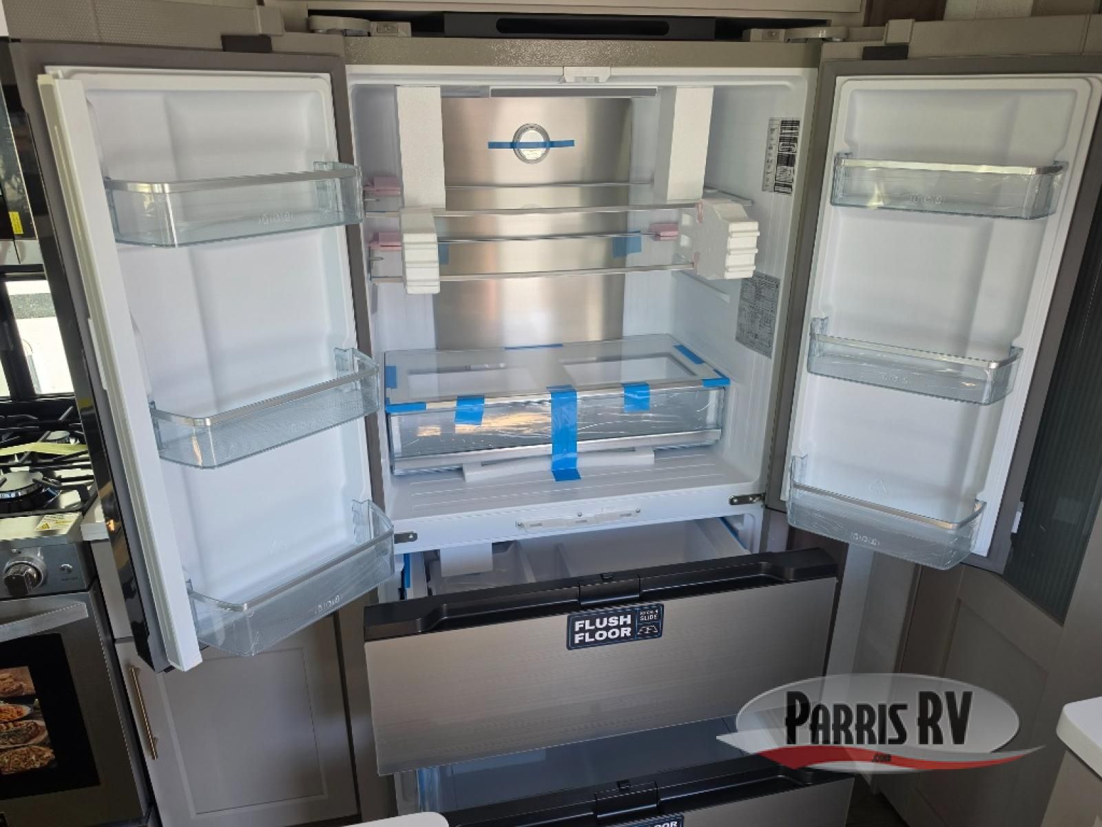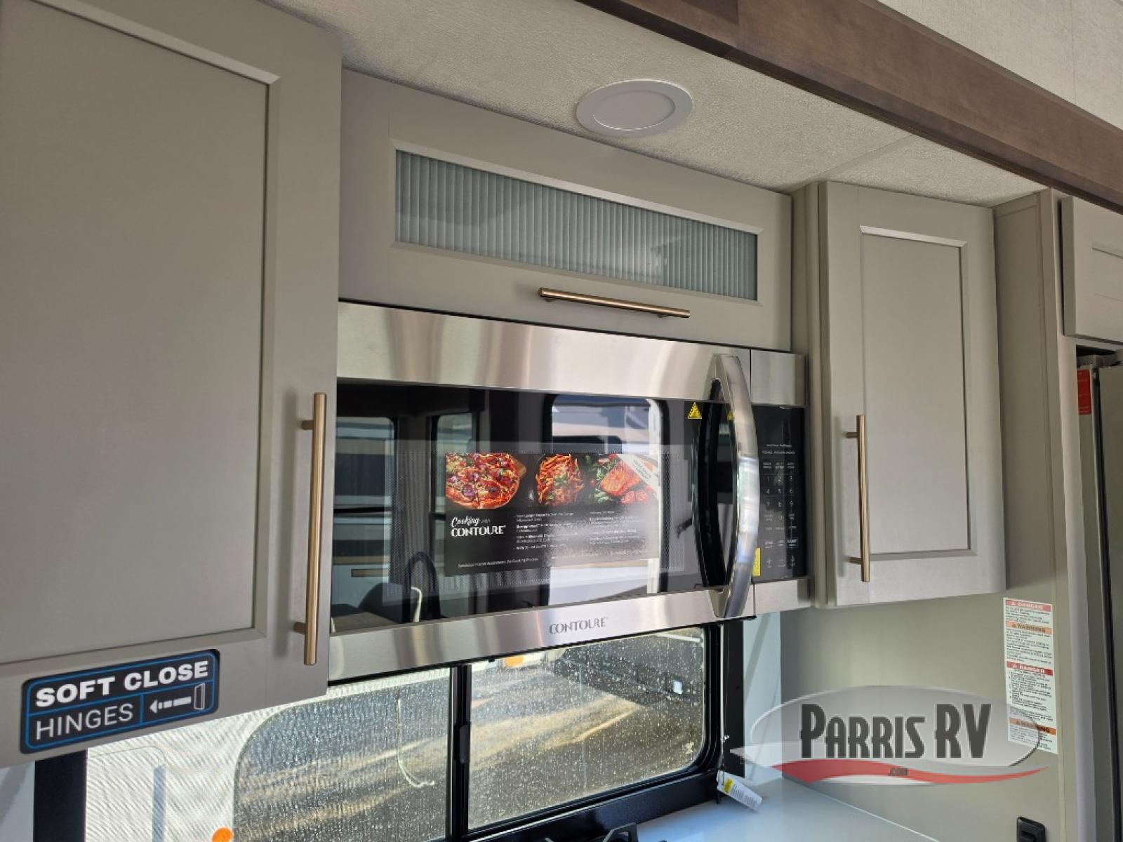 Search for the best views, the nicest RV park, or a place you haven't seen for years with this Paradigm in tow! There is a king bed slide in the master bedroom, a Smart TV, and a dresser with flip-up hidden storage for your belongings. The full bathroom offers a large residential shower, a porcelain toilet with a soft close seat, and storage for your linens, while the kitchen gives you two pantries, an island with a large undermount single basin sink and dishwasher prep if you want the option for easy clean up. You will also have a residential microwave and range, plus a 3.73 cu. ft. oven to make meals. When you're ready to relax for the evening, head to the rear living area to enjoy the dual recliner love seat across from the 50" Smart TV and fireplace!