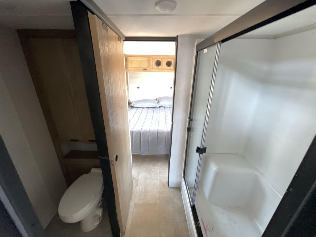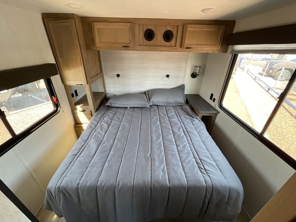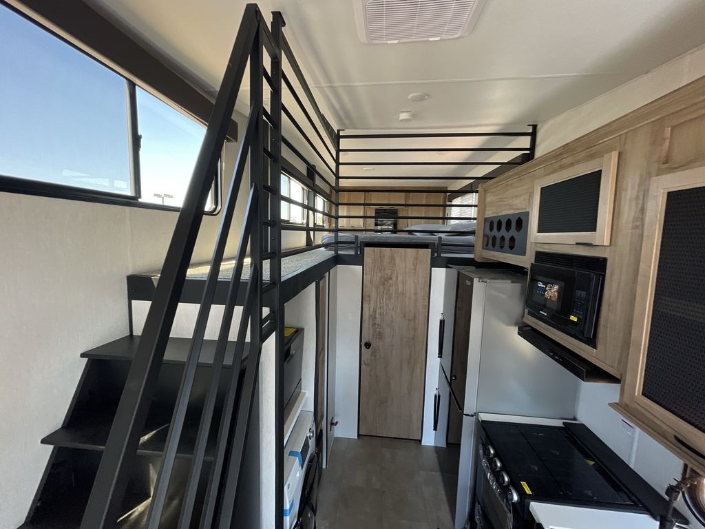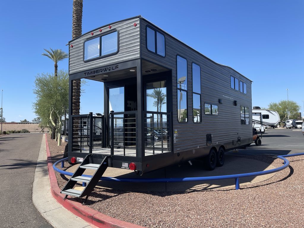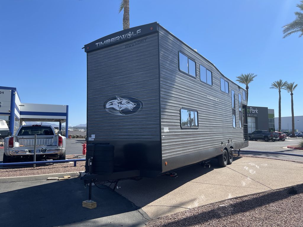 Forest River Cherokee Timberwolf Mini Loft destination trailer 20OG highlights: RV King Bed Double Loft Covered Deck Queen Bed and Twin Bunk Mat Hide-A-Bed Sofa This model is similar to 16ML but larger! A bigger bathroom, RVking bed in the lower master, and a queen bed plus a twin bunk mat in the front loft. And the second loft can be utilized as extra sleeping space or storage space! There is an 18 cu. ft. refrigerator so you can stock up for a week long vacation, a hide-a-bed sofa that can transform into added sleeping for guests, and a high top table with two stools to dine at. The bathroom below is split with a shower on one side, and a private toilet area and sink opposite. And the view is amazing from just about anywhere inside. Enjoy comforts of home wherever you decide to roam in a Cherokee Timberwolf destination trailer by Forest River. Each trailer is made with quality construction materials, like with all Forest River products, plus you'll find convenient exterior features to make extended stays easier than ever. You will love the interior with its cozy sleeping arrangements, full bath and kitchen amenities, plus plenty of storage spaces for food, clothing, gear and more! With mini loft and full-size destination trailers available, you're sure to find a Cherokee Timberwolf that fits your needs!