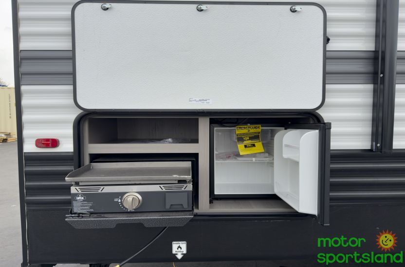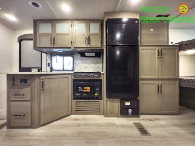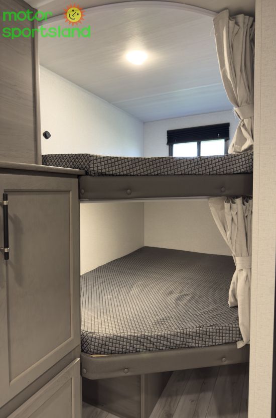 Adventure-Ready Layout: Featuring a double bunk design, it offers generous sleeping space for the whole crew, making every journey a cozy escape. Modern Tech & Comfort: Equipped with cutting-edge amenities, including a sleek kitchen and inviting living area, perfect for relaxing after a day of exploration. Space-Saving Innovation: Thoughtful storage solutions keep your gear organized, maximizing space for all your travel essentials. Outdoor Living Perfected: An exterior kitchen and awning create an ideal setting for al fresco dining and family bonding under the stars. Unmatched Value: Combining premium features with affordability, this travel trailer delivers exceptional quality for every budget.