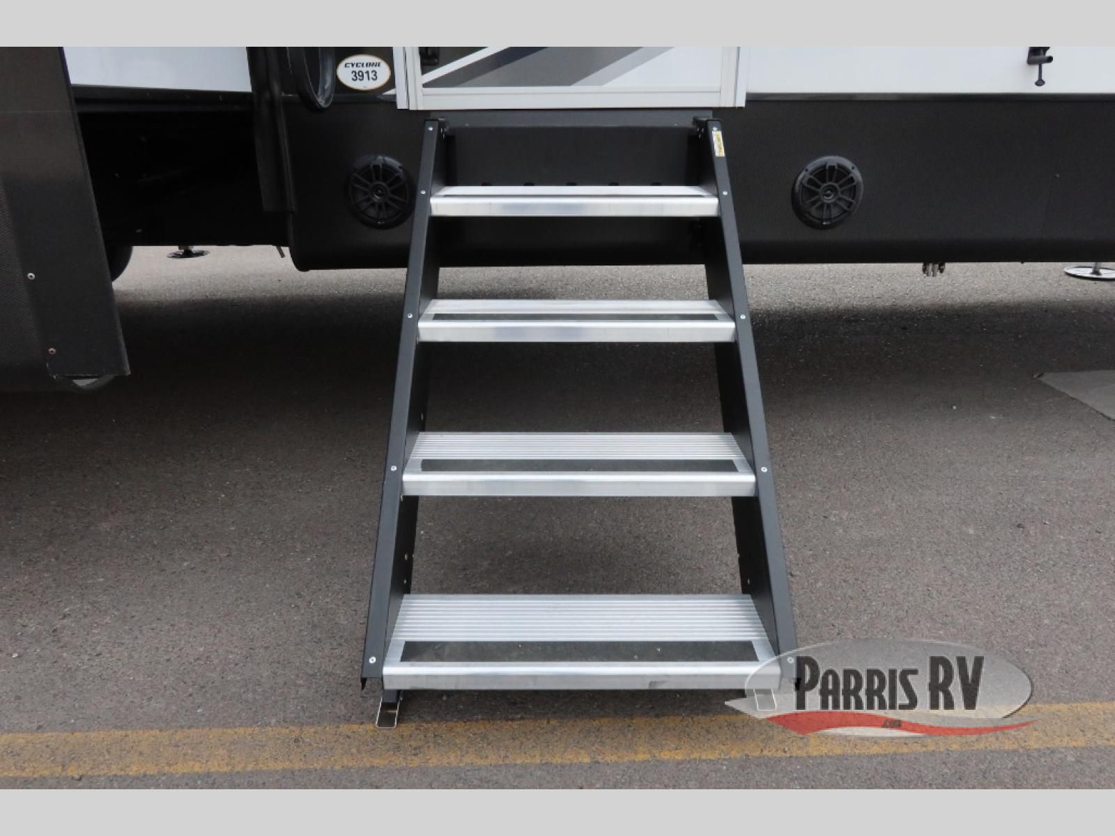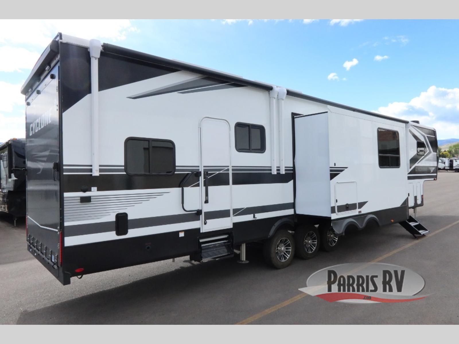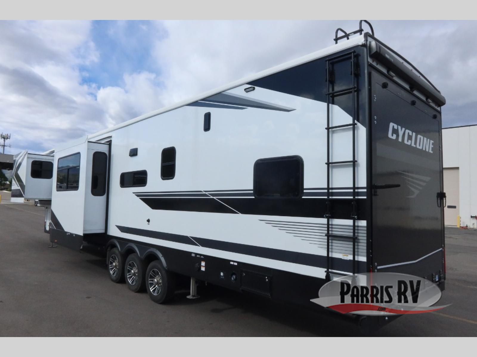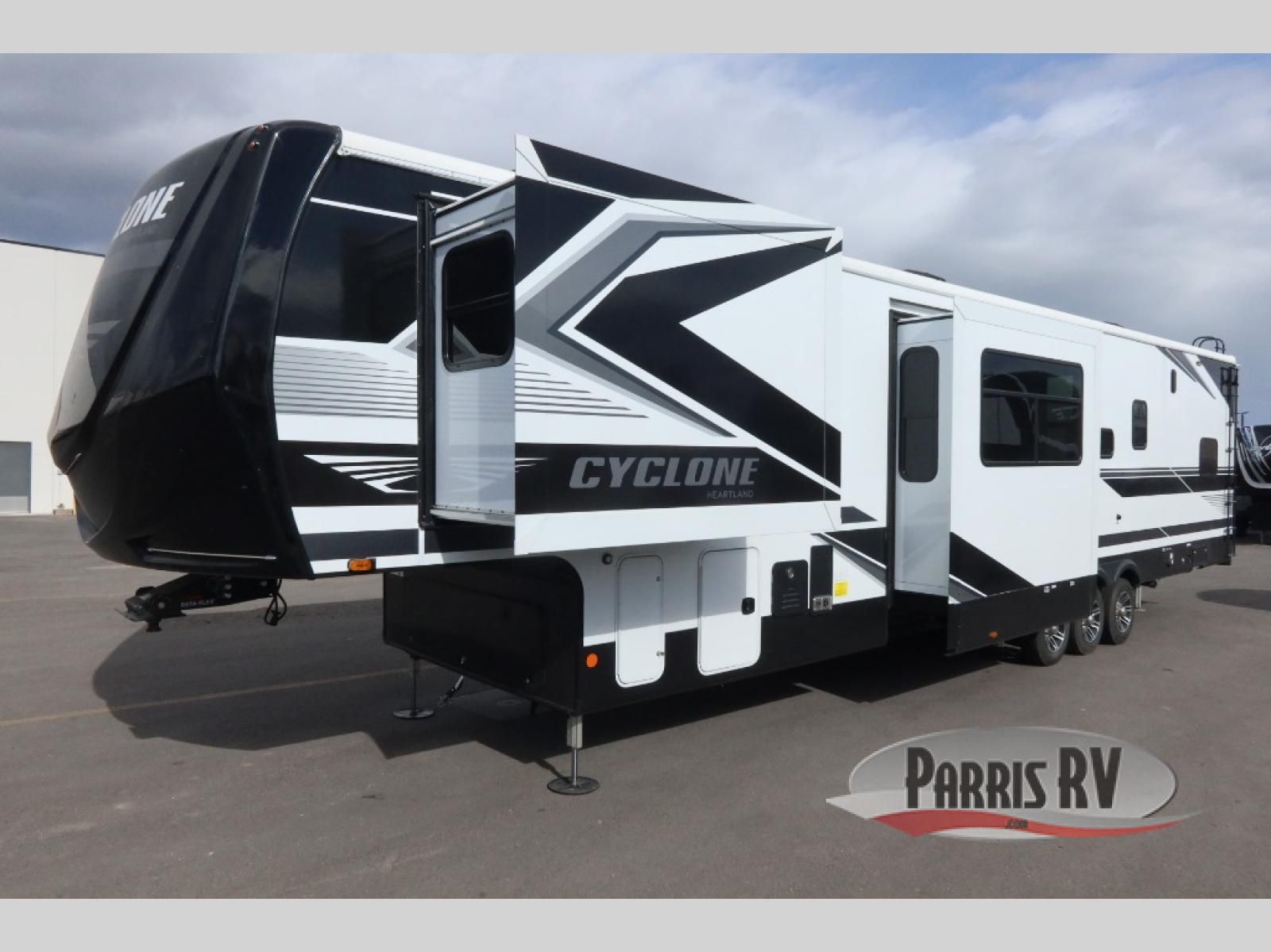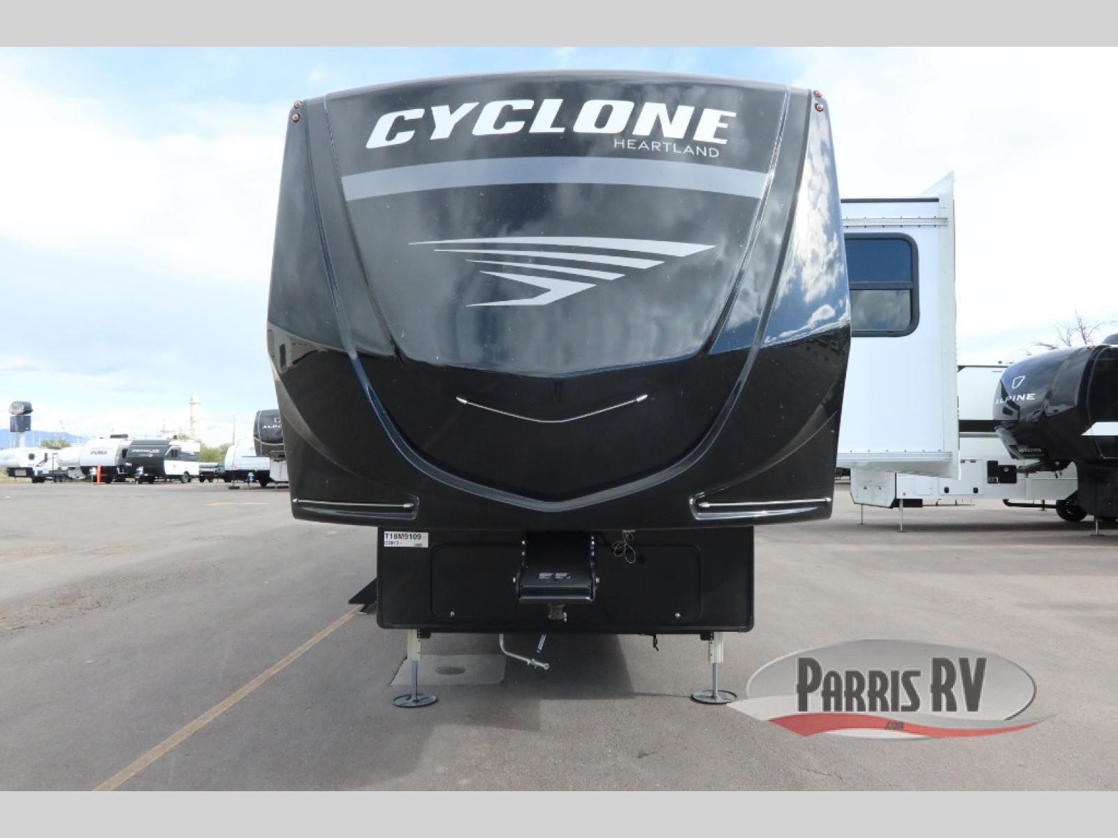 Satisfy your wanderlust with a Heartland Cyclone fifth wheel toy hauler! You won't have to sacrifice any luxury either, with indulgent features like the ducted, fully enclosed, and heated underbelly provides added protection and warmth. Inside, the LED interior lighting throughout ensures that every corner of your RV is bright and inviting, and the bathroom skylight brings in natural light and fresh air, creating a welcoming and refreshing space. Plus, the central command center with built-in tank monitoring keeps you informed and in control, making it easy to manage your resources. Also, the Premium Exterior Package includes diverse features such as Dexter axles with ABS and tow assist with sway mitigation, and the Keyed-Alike lock system ensures that all your locks are keyed the same, providing added security and convenience. Come find the perfect model for you today!