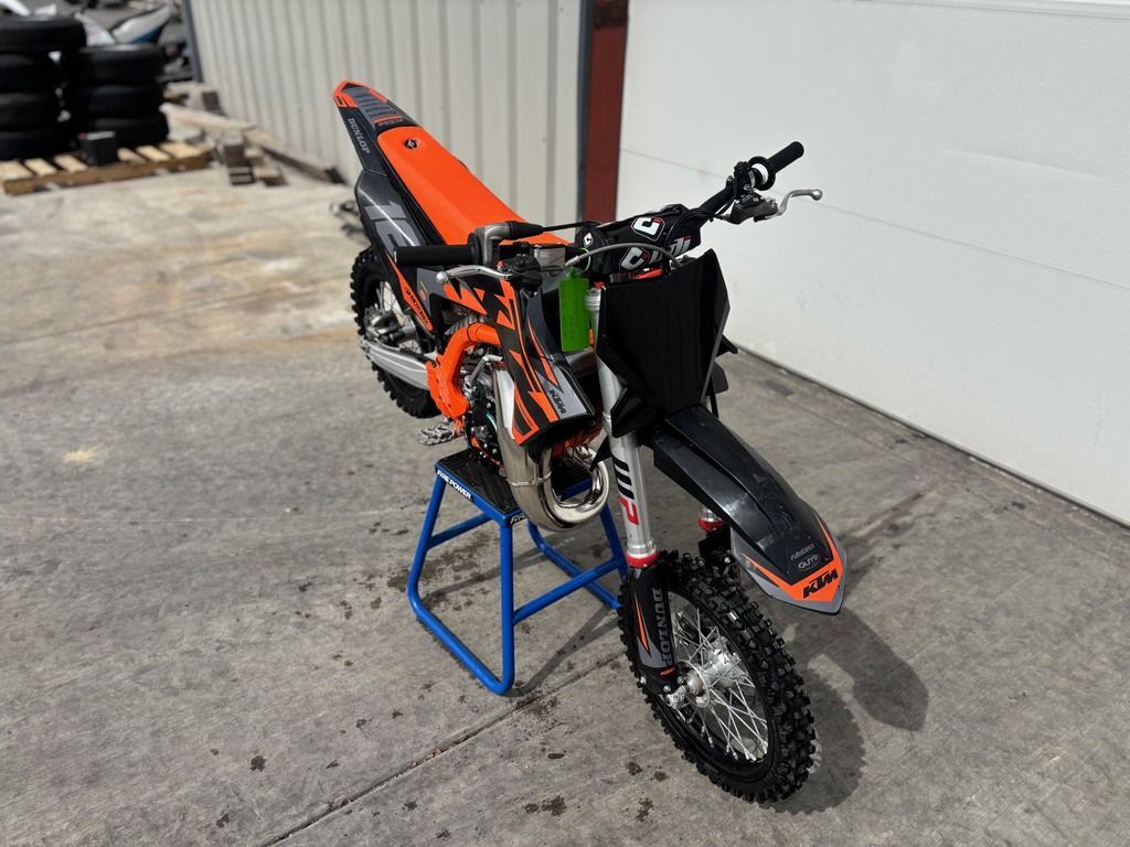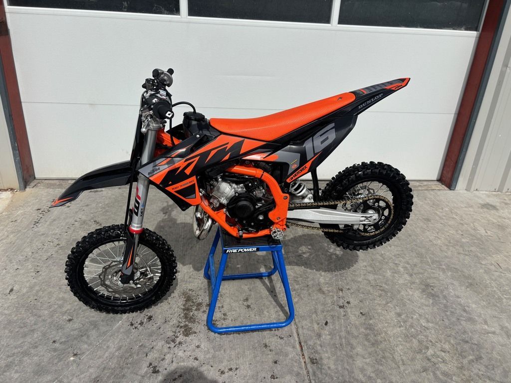 2025 KTM 65 SX When your little racer is READY TO RACE and set to take the next step up - the fully-geared 2025 KTM 65 SX is the only option. Faster, easier to ride, and designed to be the ideal stepping stone into the next racing class, the KTM 65 SX features full-size motocross bike quality, high-end components, a fully manual clutch, and gearbox - not to mention a sweet-smelling 2-stroke top-end powerband. Bottom line? This little ripper is the one to beat. Features may include: BEFORE THE GATE Adjustablity The 2025 KTM 65 SX is designed to grow with the little racer, by being height adjustable. Different adjustability options were built into the KTM 65 SX construction using scientific statistical data and manikins. So, finding the right fit for your little ripper is ultra easy, thanks to height adjustable suspension, handlebar position, subframe, and bodywork, taking the seat height from a low 715mm, to a taller 760mm. Ignition A digital ignition from Hidria finds its way onto the 2025 KTM 65 SX, with improved processing power and ignition curve, making for a cleaner burn and smoother power delivery. Carburetor A proven Mikuni TM 24 carburetor takes a prime position in producing the goods in the 2025 KTM 65 SX, with settings that work perfectly in harmony with the engine, exhaust, and air intake design. START STRONG Performance Featuring the latest in 2-stroke technology, the 2025 KTM 65 SX sets the benchmark at the starting gate. Besides using the lightest and most durable materials, the engine features a pressure-controlled exhaust valve that delivers top-level performance through its manual 6-speed transmission. The mounting concept for the crankshaft also makes for easier maintenance. Cylinder The 2025 KTM 65 SX features a high-performance cylinder made from lightweight and durable aluminum that incorporates a pressure-controlled exhaust valve (PCEV), providing unrivaled performance. Transmission From general durability to overall quality, the transmission maintains the same legendary performance but now presents as a more comprehensive and hardy unit. This is paired with a forged shift lever offering improved functionality, while the reliable and light hydraulic clutch system guarantees even wear and near maintenance-free operation. Spark Plug There's no more worrying about breaking the plug, thanks to the 2025 KTM 65 SX featuring a spark plug from BRISK with a longer thread. Also, thanks to this innovation from BRISK, the part number is printed on the spark plugs for easy reading - even while screwed in place. Easy Servicing Servicing and general maintenance are made simple, thanks to draining noses for liquids and added service markers on the engine that clearly show where to use washers, making maintenance and service easier than before. Nm markings clearly show how to tighten relevant screws to avoid overtightened or too loose bolts. Many of the screws on the engine case have also been unified to the same screw length on the engine case. CALM UNDER FIRE Tank The KTM 65 SX is ready to fuel the fire in your little ripper with a tank design that compliments the frame concept and bodywork. Airbox and Filter The airbox features a conventional suction sleeve made from a hard-wearing polyamide instead of rubber and a Twin Air filter mounting system that features snap locks for easy and intuitive mounting. The Twin Air filter is also placed under the seat and is easily accessible without any tools by simply removing the seat. It also features improved dirt intrusion resistance, with no more dirt falling into the intake tract when changing the filter.