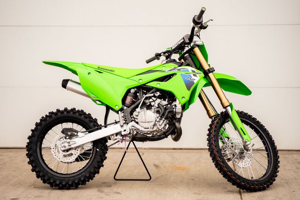 2026 Kawasaki KX™112 Proven Team Green™ Performance Built To Win Prep for the leap to full-size motocross bikes on the capable KX™112 supermini. With a large 112cc 2-stroke engine combined with a host of significant updates, this factory-inspired race machine gives young racers the tools to take their racing careers to the next level and the confidence to push even harder. Features may include: CHASSIS PERFORMANCE A COMPETITIVE EDGE A large 43mm inverted front fork features both adjustable compression and rebound damping for a more precise suspension setup, while the fully-adjustable Uni-Trak® rear suspension is just as versatile. Larger brake rotors along with Dunlop’s latest Geomax MX34 tires offer enhanced grip and stopping power. ENGINE PERFORMANCE WINNING POTENTIAL The high-performance, 112cc, 2-stroke engine produces crisp, responsive power and offers proven durability to finish each ride with confidence. A 6-speed transmission and manual clutch allow racers to hone shifting skills for maximum performance. STYLING & ERGONOMICS FIT TO WIN The ERGO-FIT® adjustable handlebar, featuring 8-position mounting adjustability, allows for an ideal ride position and enables the bike to grow with your young rider. A roomier riding position and high-grade ergonomic components help accommodate a wide range of riders, making it easy to find a comfortable fit on the bike. RACING LEGACY A WINNING HERITAGE Kawasaki’s proud history of developing championship-caliber racers guides the evolution of the new KX™112 motorcycle. Nurturing the next generation of riders and providing them with the necessary tools in their pursuit of victory is what makes KX™ the bike that builds champions. ADDITIONAL: New aluminum Renthal® Fatbar® handlebar with ODI lock-on grips New ERGO-FIT® adjustable 8-position handlebar mount New larger riding triangle and wider handlebar and footpegs Increased rear wheel travel on par with full-size KX™ models 19-in front wheel and 16-in rear wheel New Dunlop Geomax MX34 tires Team Green™ Racer Support Program