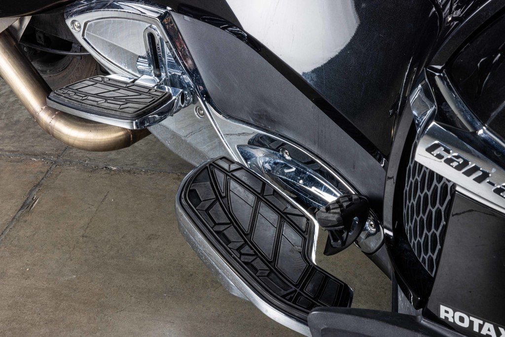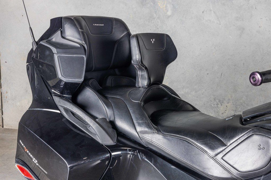 PAMPERED PARTNERThe passenger experience on a Spyder RT is like no other. The Y-frame design creates peace-of-mind, while the ergonomic backrest, adjustable footboards, heated grips and individual audio control pamper them over the long haul.