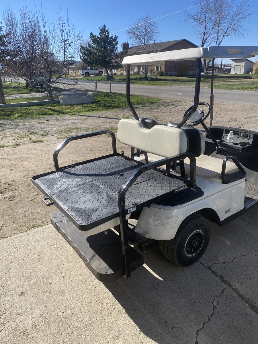 I have this easy go golf cart. Not sure what it is. It’s non-running. It just stopped running one day. I think it might be the battery charger isn’t charging, but I’m not sure it’s got a lot of new parts on it. Very nice machine. I have an extra set of mag wheels and tires. I also have new seat upholstery
