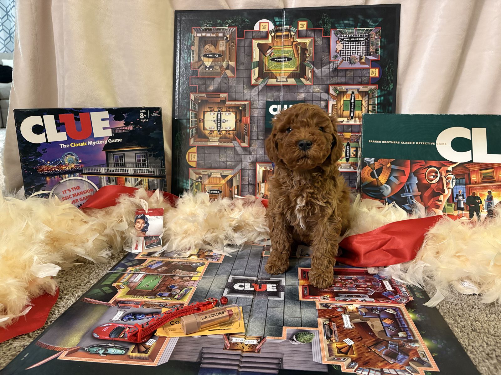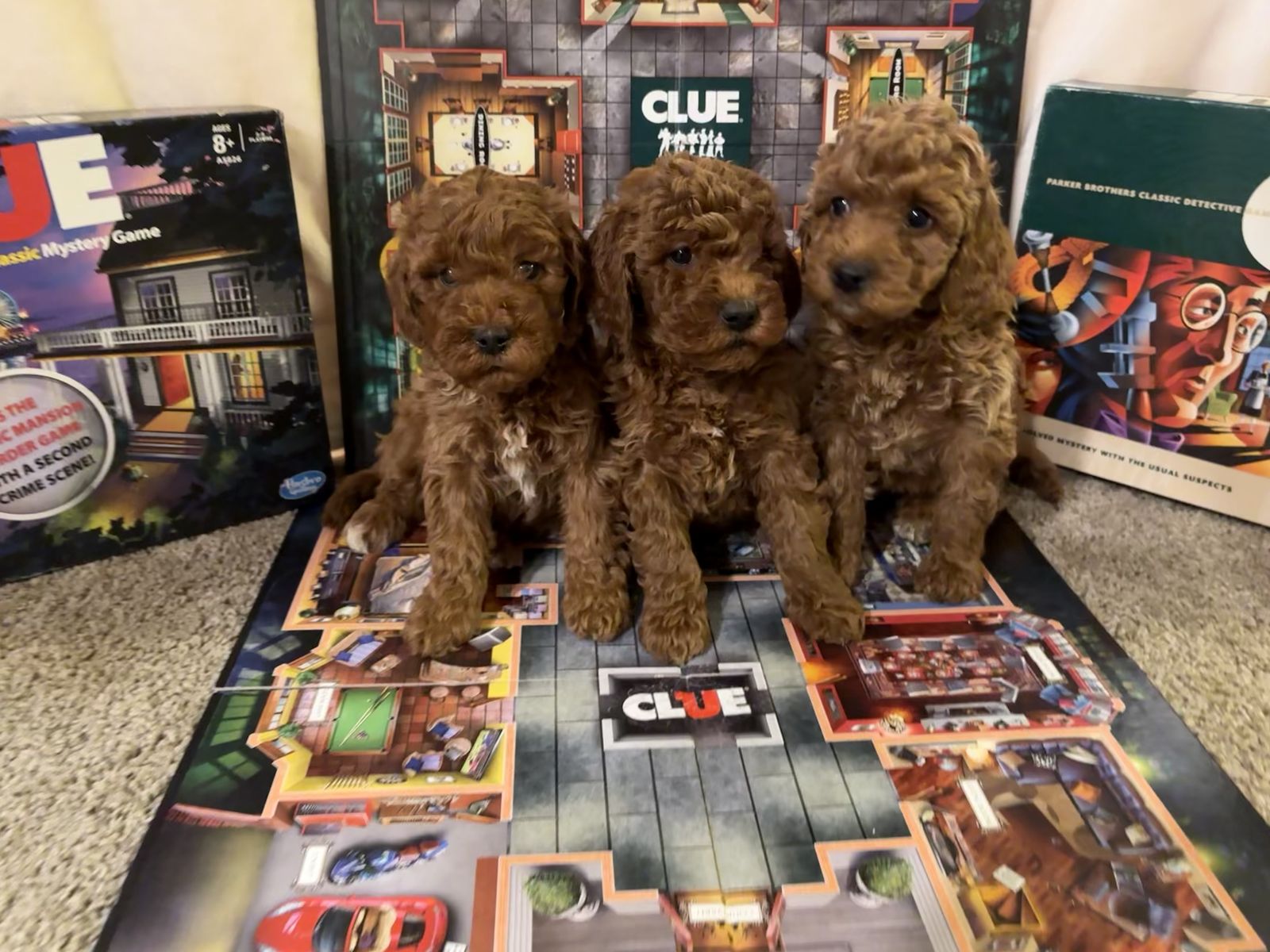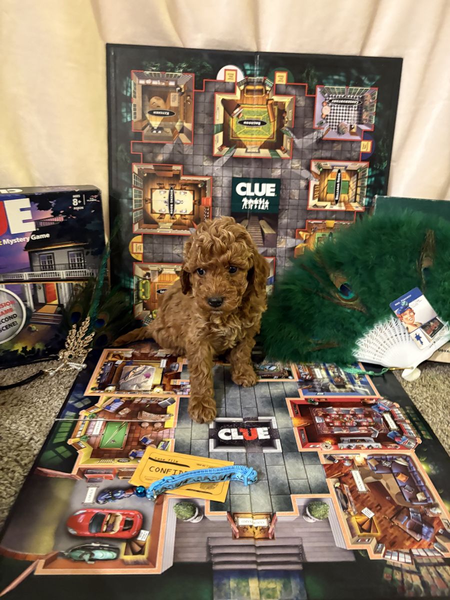 Their dad is Sir Francis Richardo Guissepe a stunning miniature poodle weighing 19lbs. His coat is beautiful red and he has a great disposition.