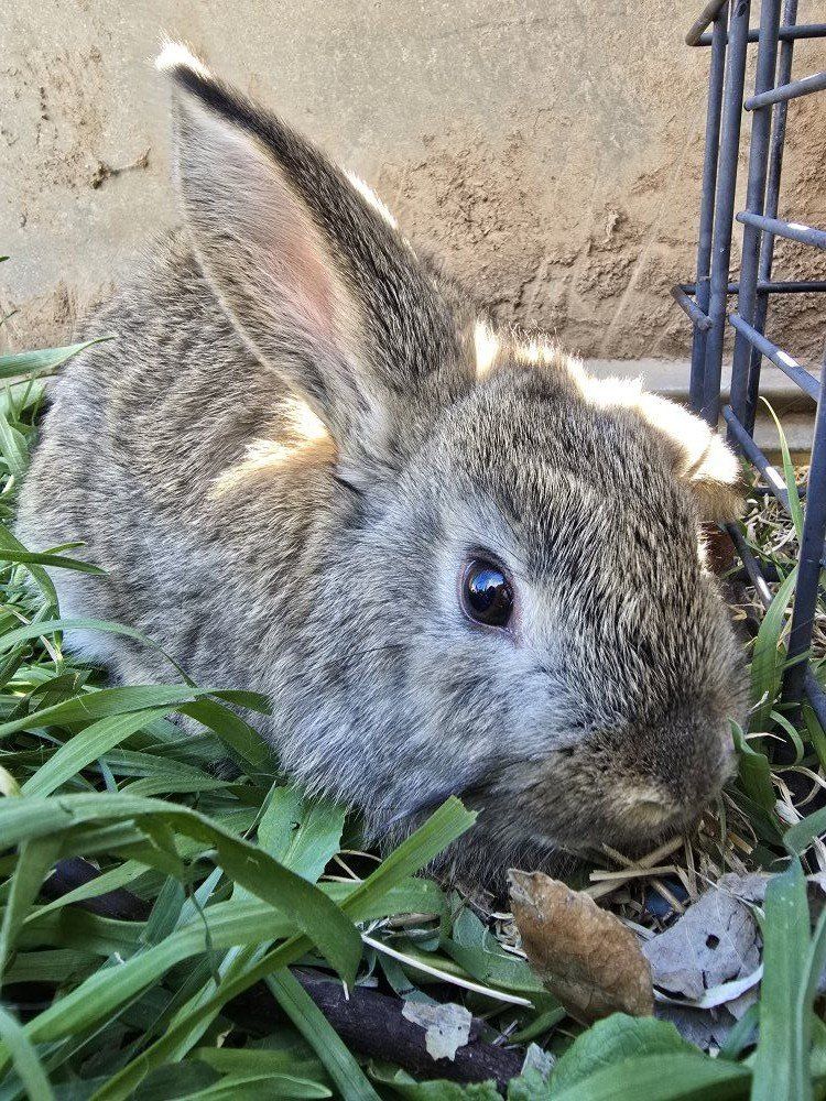 Dad is a Holland Lop & Mom I believe is a cottontail, or something similar. Loves treats of celery tops and cucumbers.